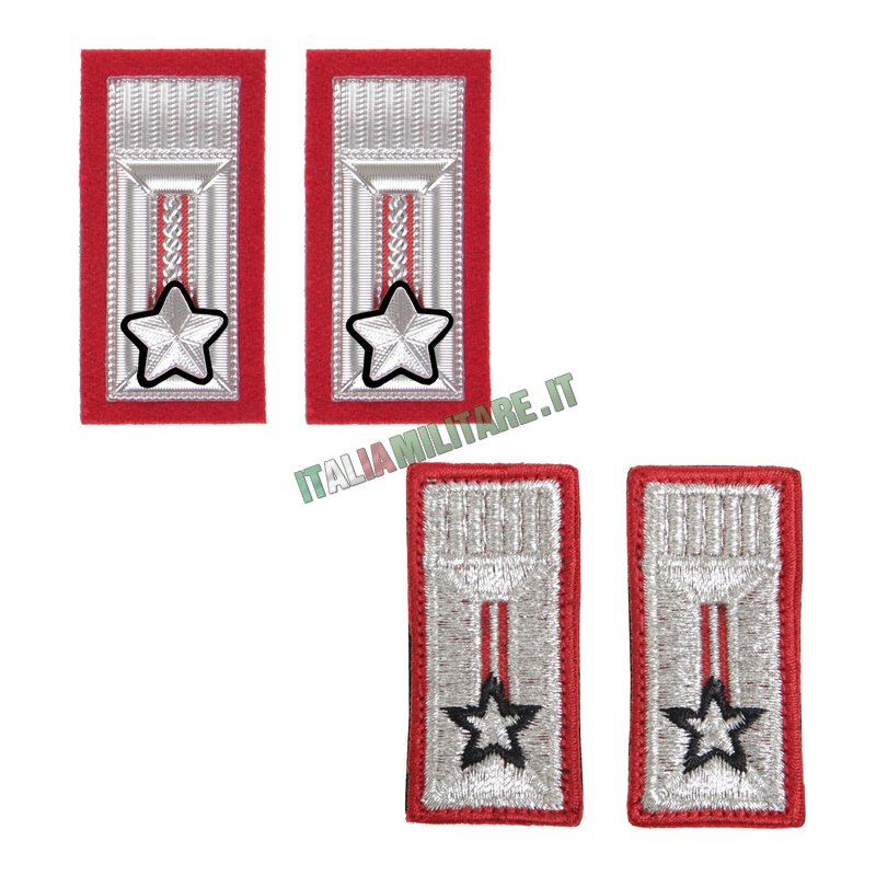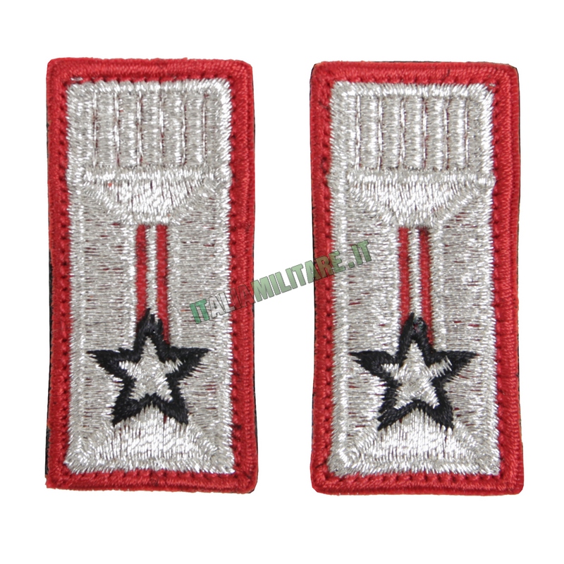 COPPIA ALAMARI CARABINIERI - UFFICIALIModello di mostrine CC prodotte in Italia, disponibili sia in versione ricamata sia in fibra, dotate di scratch sul retro e adatte per essere usate con la polo o con la divisa da OP. Il modello di alamari in vendita ha la stella argentata con bordatura nera, per questo è specifico per Ufficiali. MODELLO, A SCELTA: