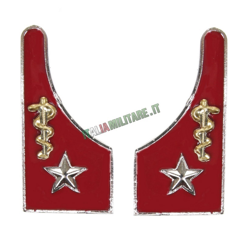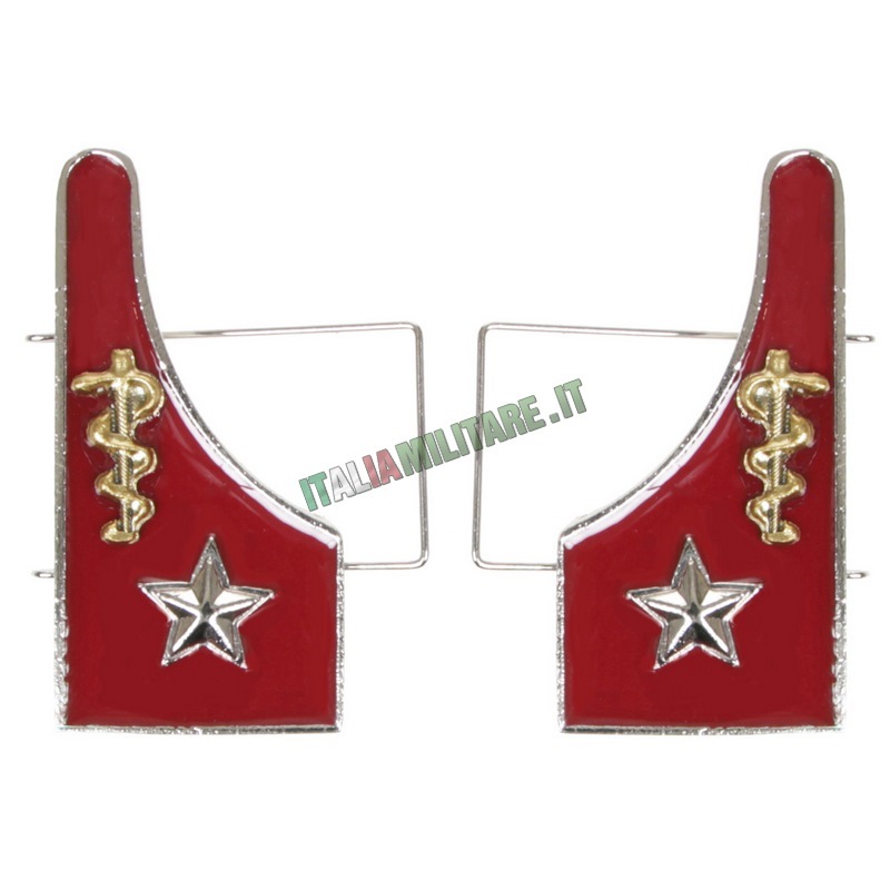 ALAMARI MOSTRINE IN METALLO SANITA' MEDICOCoppia (2 pezzi) di alamari mostrine militari metalliche smaltate da divisa - uniforme Esercito Italiano in modello da giacca o da camicia a scelta per Sanità - Medici: La differenza tra i modelli di alamari militari per uniforme da giacca o da camicia è nell'attacco sul retro, ovvero: