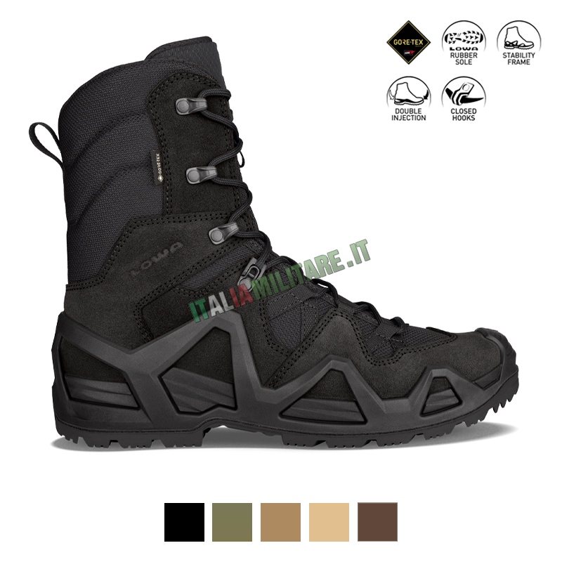 ANFIBI LOWA ZEPHYR MK2 GTX HIGli anfibi Lowa Zephyr MK2 Gtx HI sono il modello alto della linea Zephyr MK2, ovvero l'evoluzione dei leggendari stivali Lowa Zephyr Gtx HI e vengono scelti quotidianamente dalle forze militari e di polizia di tutto il mondo, non solo per un uso professionale ma anche montano, desertico e outdoor in genere. Come il modello precedente dal taglio alto, anche questi stivali fondono insieme caratteristiche di resistenza, leggerezza e flessibilità:
