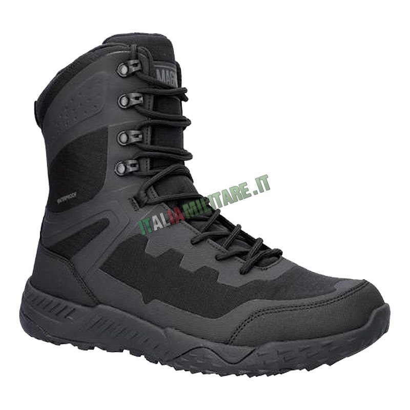 ANFIBI MAGNUM ULTIMA - MODELLO ALTO 8.0Gli Anfibi alti Magnum, appartenenti alla serie Ultima, sono un prodotto unico e visionario nel panorama delle calzature professionali e operative, perché prodotti utilizzando plastica riciclata. Questi anfibi in modello alto sono leggeri e confortevoli, dotati di zip laterale per favorire l'indosso e composti da una struttura a 9 buchi per garantire stabilità. La serie Ultima si distingue dalle altre per la produzione di calzature ecologicamente sostenibili e Vegan Friendly, che però non compromettono le prestazioni dell'operatore. Il tessuto superiore e quello della tomaia sono realizzati quasi totalmente in plastica riciclata e non solo, sono anche impermeabili! In media un anfibio della serie Ultima è realizzato con bottiglie di plastica riciclate da 380 ml ciascuna. CARATTERISTICHE: