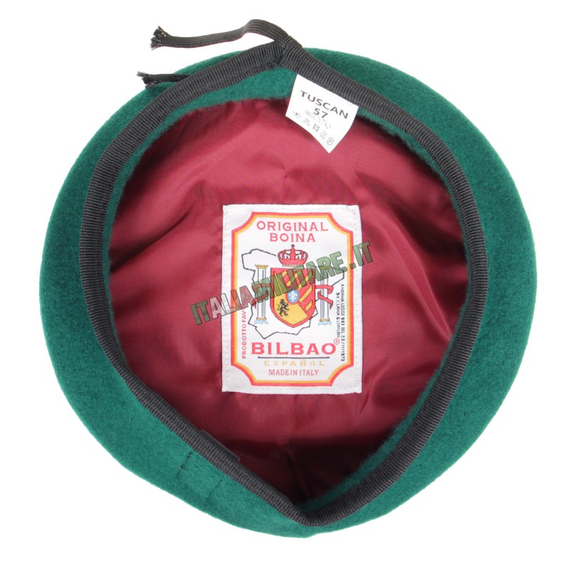 BASCO MODELLO SPAGNOLO FINANZABasco verde della Guardia di Finanza Original Boina Bilbao realizzato in Italia con lana di qualità superiore, componente dell'uniforme di Forze Armate e Forze dell'Ordine. Sul modello basco spagnolo in vendita è possibile ovviamente applicare il classico fregio - distintivo in metallo o altro materiale e per questo dispone di un rinforzo interno nella posizione in cui viene applicato il fregio, in modo da fornire supporto e comodità quando è indossato. MATERIALE: 94% LANA DI QUALITA' SUPERIORE, 6% NYLON Da oltre 10 anni Italia Militare si occupa della vendita online di abbigliamento militare, forniture militari e Basco Modello Spagnolo Verde Guardia di Finanza - Made in Italy vantando una grande esperienza e un magazzino di mille metri quadrati con oltre undicimila prodotti militari disponibili a stock. Supportiamo e riforniamo di abbigliamento militare e accessori militari le nostre forze armate, forze dell'ordine e operatori di sicurezza, anche nelle missioni all'estero. I nostri prodotti sono destinati a militari, outdoor, tempo libero, soft-air e ai collezionisti. Puoi ordinare Basco Modello Spagnolo Verde Guardia di Finanza - Made in Italy attraverso web, E-mail e telefono. Se hai difficoltà a trovare Basco Modello Spagnolo Verde Guardia di Finanza - Made in Italy utilizza il campo ricerca per filtrare i risultati. Tutti i prodotti del settore provengono dai più importanti e affidabili fornitori del settore militaria e outdoor. La soddisfazione del Cliente è importante per Italia Militare e per questo la consegna di Basco Modello Spagnolo Verde Guardia di Finanza - Made in Italy avviene nel più breve tempo possibile.