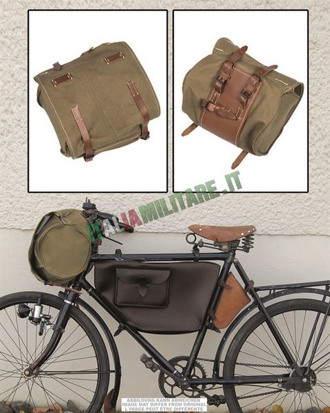 BORSA SVIZZERA DA BICICLETTA – NUOVO ORIGINALEQuesta borsa da manubrio "Handlebars" è un accessorio originale ex dotazione dell'Esercito Svizzero. Realizzata in resistente cotone, ha due cinghie in pelle frontali atte a chiudere la borsa e altre cinghie posteriori regolabili che consentono invece di fissare la sacca attorno al manubrio. In ρiυ', al di sotto della patta principale, si trovano due bottoni automatici che consentono una chiusura più sicura della borsa. Queste borse furono fornite alla fanteria ciclabile svizzera, insieme alla bicicletta MO-05, tra il 1905 e il 1989 e venivano utilizzate per il trasporto degli oggetti più vari, in particolare dell'elmetto. COLORE: COME DA FOTO MARCA: ESERCITO SVIZZERO MATERIALE: corpo in cotone, cinghie e finiture in pelle CONDIZIONI: NUOVA, NON HA USO Da oltre 10 anni Italia Militare si occupa della vendita online di abbigliamento militare, forniture militari e Borsa Militare per Bicicletta Originale Svizzera vantando una grande esperienza e un magazzino di mille metri quadrati con oltre undicimila prodotti militari disponibili a stock. Supportiamo e riforniamo di abbigliamento militare e accessori militari le nostre forze armate, forze dell'ordine e operatori di sicurezza, anche nelle missioni all'estero. I nostri prodotti sono destinati a militari, outdoor, tempo libero, soft-air e ai collezionisti. Puoi ordinare Borsa Militare per Bicicletta Originale Svizzera attraverso web, E-mail e telefono. Se hai difficoltà a trovare Borsa Militare per Bicicletta Originale Svizzera utilizza il campo ricerca per filtrare i risultati. Tutti i prodotti del settore provengono dai più importanti e affidabili fornitori del settore militaria e outdoor. La soddisfazione del Cliente è importante per Italia Militare e per questo la consegna di Borsa Militare per Bicicletta Originale Svizzera avviene nel più breve tempo possibile.