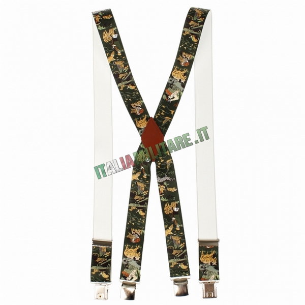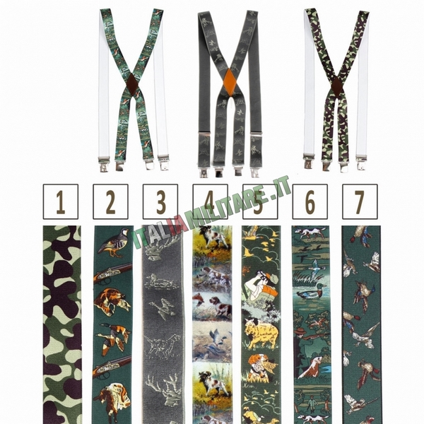 BRETELLE SBB MODELLO CACCIAModello di bretella universale disponibile in varie fantasie, come da foto, ispirate al mondo della caccia, scegli tra quelle in vendita quella che ti piace di più! MATERIALE: ELASTICO Da oltre 10 anni Italia Militare si occupa della vendita online di abbigliamento militare, forniture militari e Bretelle Caccia per Pantaloni vantando una grande esperienza e un magazzino di mille metri quadrati con oltre undicimila prodotti militari disponibili a stock. Supportiamo e riforniamo di abbigliamento militare e accessori militari le nostre forze armate, forze dell'ordine e operatori di sicurezza, anche nelle missioni all'estero. I nostri prodotti sono destinati a militari, outdoor, tempo libero, soft-air e ai collezionisti. Puoi ordinare Bretelle Caccia per Pantaloni attraverso web, E-mail e telefono. Se hai difficoltà a trovare Bretelle Caccia per Pantaloni utilizza il campo ricerca per filtrare i risultati. Tutti i prodotti del settore provengono dai più importanti e affidabili fornitori del settore militaria e outdoor. La soddisfazione del Cliente è importante per Italia Militare e per questo la consegna di Bretelle Caccia per Pantaloni avviene nel più breve tempo possibile.