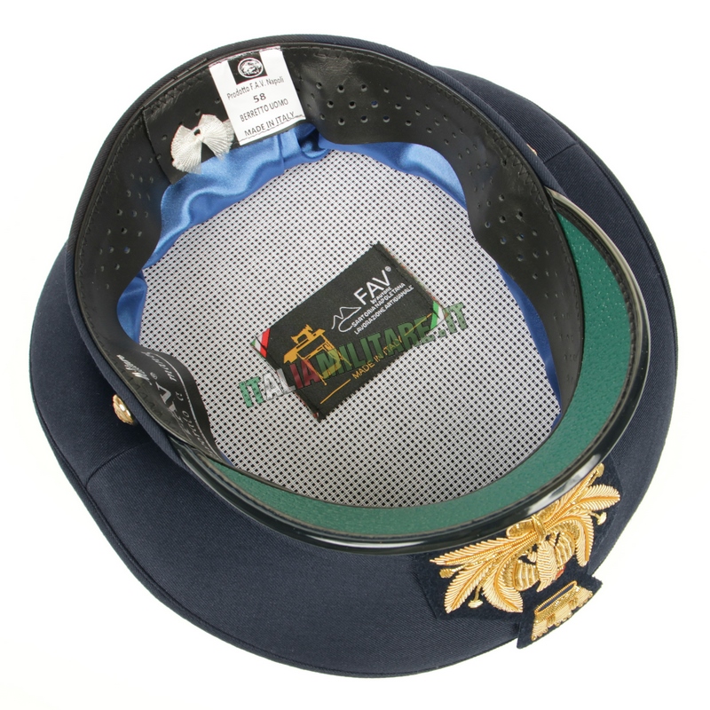 Il berretto per uniforme ordinaria Aeronautica che qui proponiamo in vendita è composto da una struttura circolare principale semi - rigida che si adatta in maniera comoda alla circonferenza della testa; frontalmente è dotato ovviamente di visiera leggermente curva verso il basso con larghezza sul davanti nel punto massimo di circa 4 cm. COLORE: blu, di ordinanza, come in foto, dell'Aeronautica Militare MADE IN ITALY