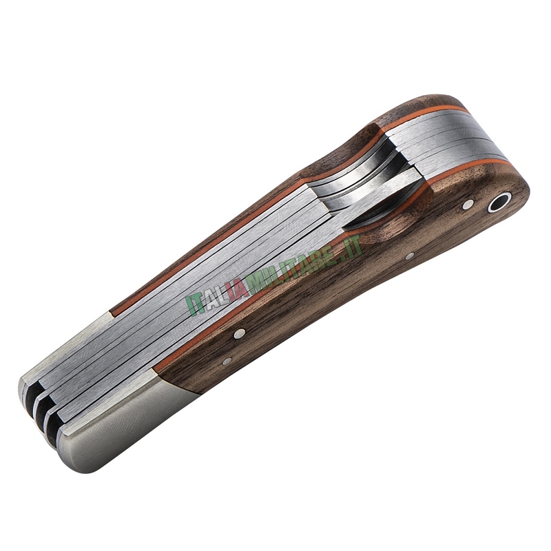 COLTELLO A TRE LAME BERETTAColtello pieghevole Duiker di Beretta, con tre tipi di lame da 7,5 cm in acciaio inossidabile: liscia, skinner e seghettata con punta a cacciavite. Date le sue dimensioni ridotte, una volta chiuso può essere facilmente trasportato e portato con sè per un pronto utilizzo in momenti di necessità. MISURE DEL COLTELLO: