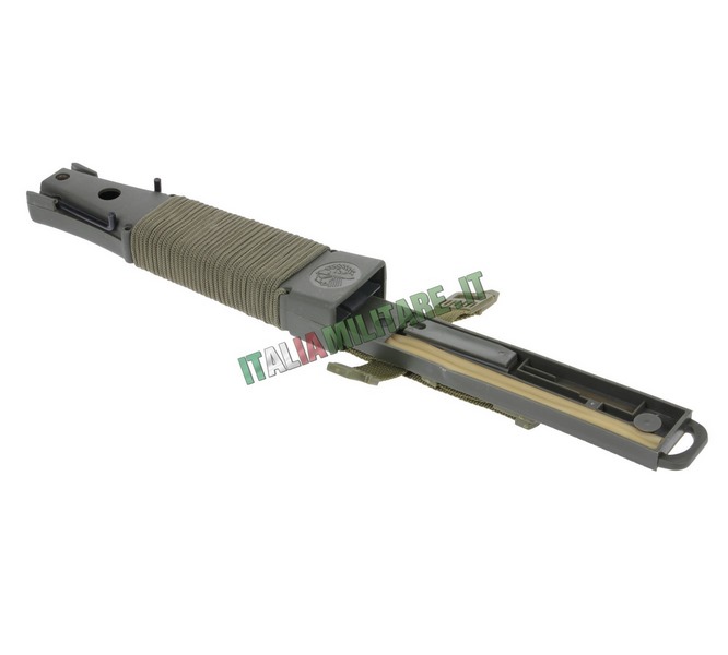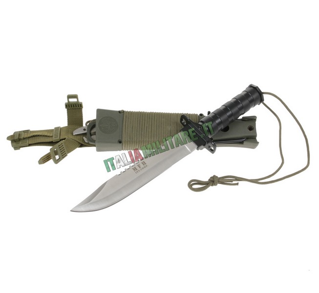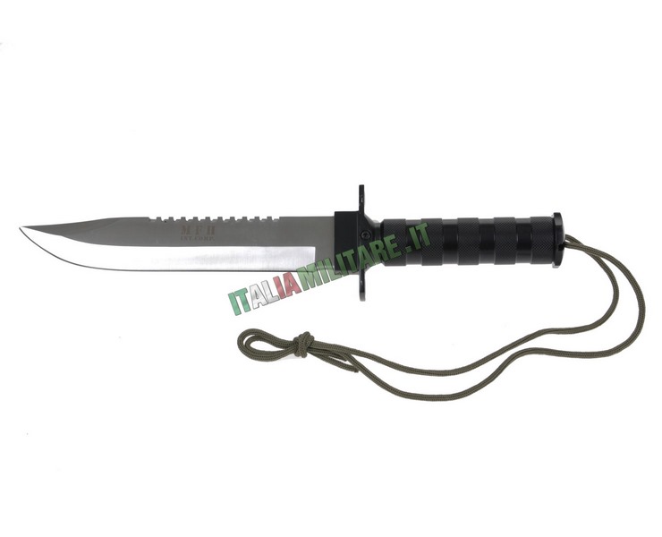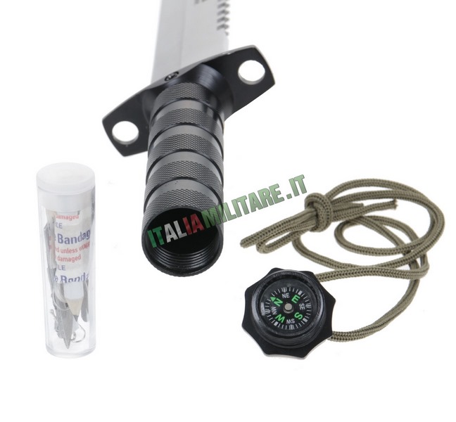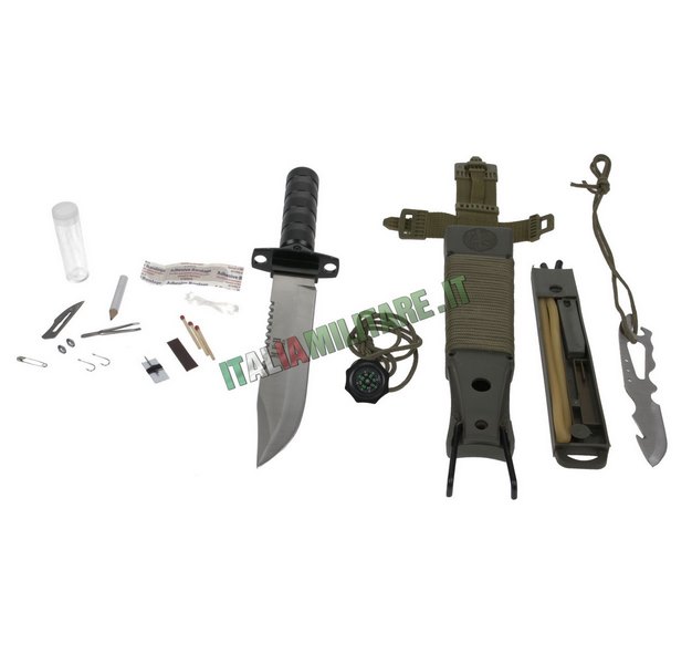 COLTELLO MILITARE SOPRAVVIVENZA JUNGLE IIIl coltello survival Jungle II ha una lama fissa che include un mini kit di sopravvivenza contenuto nel fodero e nell'impugnatura del coltello stesso. La parte terminale dell'impugnatura in metallo è equipaggiata con una bussola che funge anche da "tappo" svitabile che rende accessibile il vano interno: un vero e proprio portaoggetti impermeabile per il kit di sopravvivenza! Questo in vendita è un coltello militare estremamente ben progettato ed extra-equipaggiato per renderlo un eccellente strumento di sopravvivenza. CARATTERISTICHE: