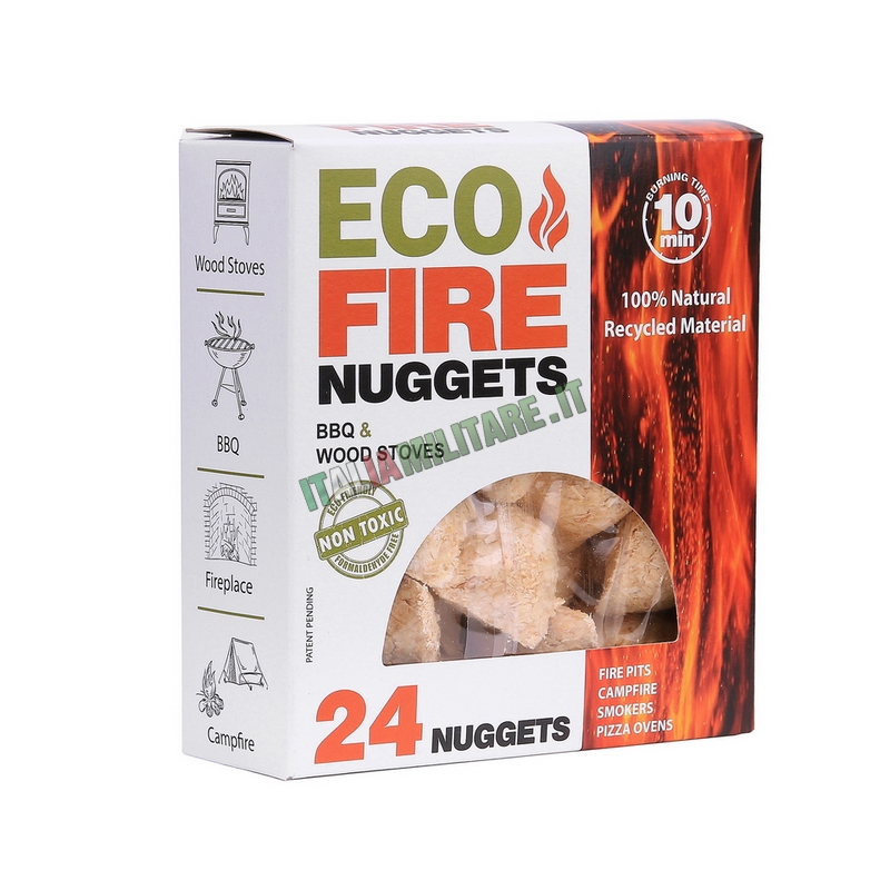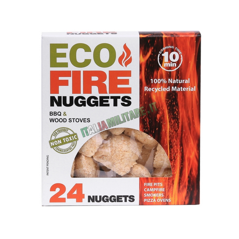 COMBUSTIBILE PER ACCENEDERE IL FUOCOBricchetti accendifuoco ecologici di alta qualità per accendere fuochi, barbecue e caminetti. Gli Eco Fire Nuggets sono la soluzione perfetta per accendere in modo rapido ed efficace carbone, caminetti, stufe a legna, campeggio, bracieri e altro ancora. Della linea Eco Fire è disponibile anche il Combustibile a Bastoncino. Come si usano: CONFEZIONE DA 24 PEZZI. Composizione: fonti di legno sostenibili (pino), cotone naturale e cera di paraffina alimentare. MARCA: ECO FIRE Da oltre 10 anni Italia Militare si occupa della vendita online di abbigliamento militare, forniture militari e Combustibile Eco Fire a Pepita per Accensione Fuoco vantando una grande esperienza e un magazzino di mille metri quadrati con oltre undicimila prodotti militari disponibili a stock. Supportiamo e riforniamo di abbigliamento militare e accessori militari le nostre forze armate, forze dell'ordine e operatori di sicurezza, anche nelle missioni all'estero. I nostri prodotti sono destinati a militari, outdoor, tempo libero, soft-air e ai collezionisti. Puoi ordinare Combustibile Eco Fire a Pepita per Accensione Fuoco attraverso web, E-mail e telefono. Se hai difficoltà a trovare Combustibile Eco Fire a Pepita per Accensione Fuoco utilizza il campo ricerca per filtrare i risultati. Tutti i prodotti del settore provengono dai più importanti e affidabili fornitori del settore militaria e outdoor. La soddisfazione del Cliente è importante per Italia Militare e per questo la consegna di Combustibile Eco Fire a Pepita per Accensione Fuoco avviene nel più breve tempo possibile.