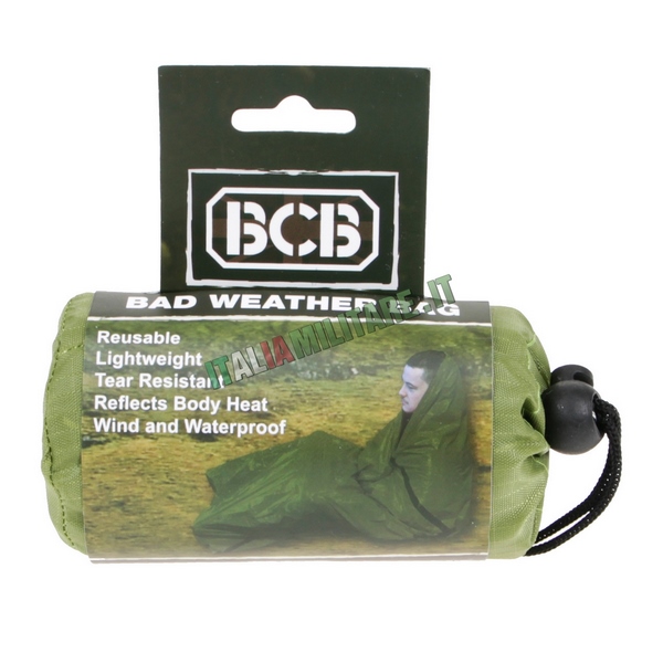COPERTA DA SOPRAVVIVENZA BCBCoperta di emergenza "all weather survival bag" realizzata in colore verde militare, leggera ma resistente, è una copertura di base in grado di fornire riparo e protezione da vente, freddo e acqua grazie alla sua impermebailità. CARATTERISTICHE:
