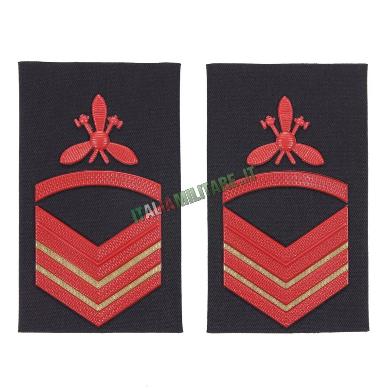GRADI MOTORISTI NAVALI MARINA MILITARECoppia di gradi tubolari da Motorista Navale della Marina Militare, appartenenti alla categoria degli Specialisti del Sistema di Piattaforma: Tecnici di macchine, Conduttori automezzi, Meccanici, Motoristi Navali, Elettricisti, Elettromeccanici. Il grado tubolare viene venduto in coppia (2 pezzi) come da foto dettagliate dei singoli gradi. Nella parte alta i gradi tubolari hanno applicato il simbolo della categoria o specialità. GRADI TUBOLARI MOTORISTI NAVALI DISPONIBILI: