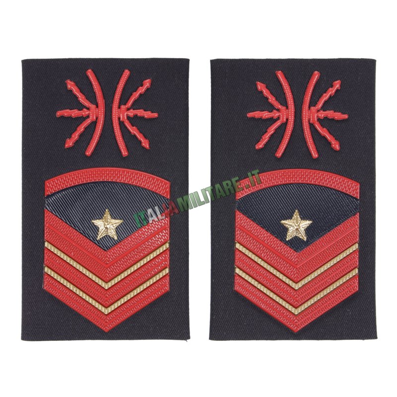 GRADI RADARISTA MARINA MILITARECoppia di gradi tubolari radaristi della Marina Militare categoria Specialisti del Sistema di Combattimento: radaristi, telecomunicatori, segnalatori, ecogoniometristi, radiotelegrafisti, riceractori elettronici. Il grado tubolare viene venduto in coppia (2 pezzi) come da foto dettagliate dei singoli gradi. Nella parte alta i gradi tubolari (fino al grado da sottufficiale) hanno il ricamo di categoria o specialità. GRADI TUBOLARI RADARISTA DISPONIBILI: