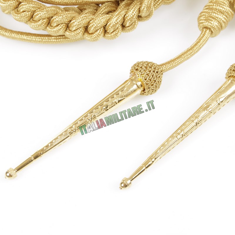 CORDELLINA CARABINIERILa cordellina è un accessorio simbolo dei Carabinieri che completa la Grande Uniforme Storica GUS e l'Uniforme di Rappresentanza, sia invernale che estiva. Questo modello di cordellina per GUS è in colore oro, composta da una parte da due trecce culminanti ciascuna con un puntale metallico, dall'altra da due cordoni semplici, sdoppiati. La cordellina si indossa fissandola sotto la controspallina destra, con il tratto più lungo che passa sotto il braccio e quello più corto trattenuto dal cordone interno alla treccia. L'anello, disposto ai capi della treccia, viene agganciato al bottone più alto della bottoniera. IMPORTANTE: questo articolo è un prodotto ufficiale autorizzato da parte dell'Arma dei Carabinieri, viene venduto con cartellino che ne indica il codice di contratto autorizzativo alla produzione. COLORE: ORO LUNGHEZZA TOTALE: 130 CM MATERIALE: RAYON MADE IN ITALY ► ATTENZIONE: LA VENDITA DI QUESTO ARTICOLO È RISERVATA AD APPARTENENTI AL CORPO DI RIFERIMENTO IDENTIFICATI TRAMITE TESSERINO DI RICONOSCIMENTO (Art. 28 TULPS). Da oltre 10 anni Italia Militare si occupa della vendita online di abbigliamento militare, forniture militari e Cordellina da Grande Uniforme GUS Oro vantando una grande esperienza e un magazzino di mille metri quadrati con oltre undicimila prodotti militari disponibili a stock. Supportiamo e riforniamo di abbigliamento militare e accessori militari le nostre forze armate, forze dell'ordine e operatori di sicurezza, anche nelle missioni all'estero. I nostri prodotti sono destinati a militari, outdoor, tempo libero, soft-air e ai collezionisti. Puoi ordinare Cordellina da Grande Uniforme GUS Oro attraverso web, E-mail e telefono. Se hai difficoltà a trovare Cordellina da Grande Uniforme GUS Oro utilizza il campo ricerca per filtrare i risultati. Tutti i prodotti del settore provengono dai più importanti e affidabili fornitori del settore militaria e outdoor. La soddisfazione del Cliente è importante per Italia Militare e per questo la consegna di Cordellina da Grande Uniforme GUS Oro avviene nel più breve tempo possibile.