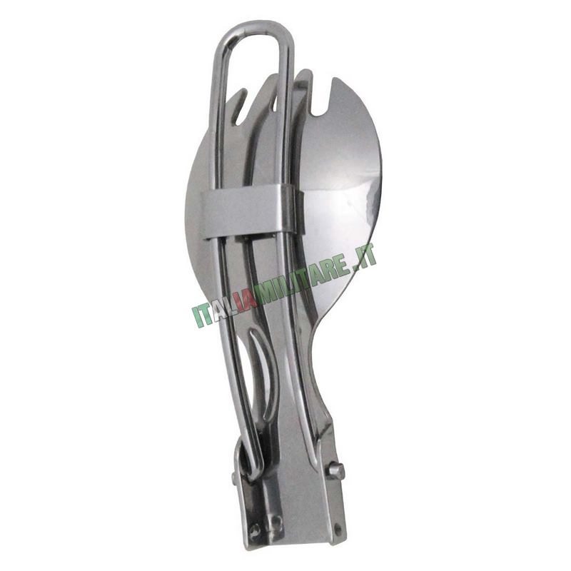 SPORK PIEGHEVOLEModello di spork pieghevole, ottimo per essere utilizzato in viaggio o durante escursioni, survival e in generale per attività outdoor. Lo spork è un utensile nato dall'esigenza di fondere più posate, cioè la forchetta e il cucchiaio, in un accessorio solo. Occupa poco spazio e può facilmente essere riposto in piccole borse o zaini. Della stessa linea di posate pieghevoli sono in vendita singolarmente anche Coltello, Forchetta e Cucchiaio. DIMENSIONI: