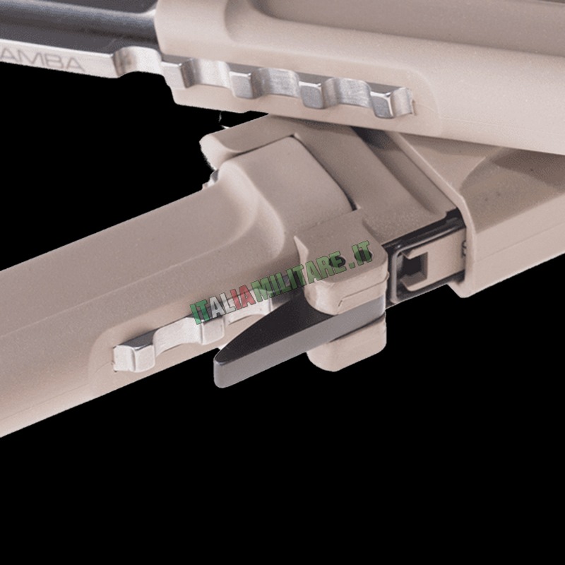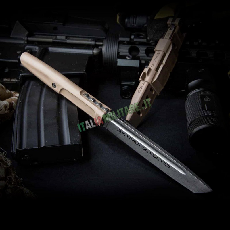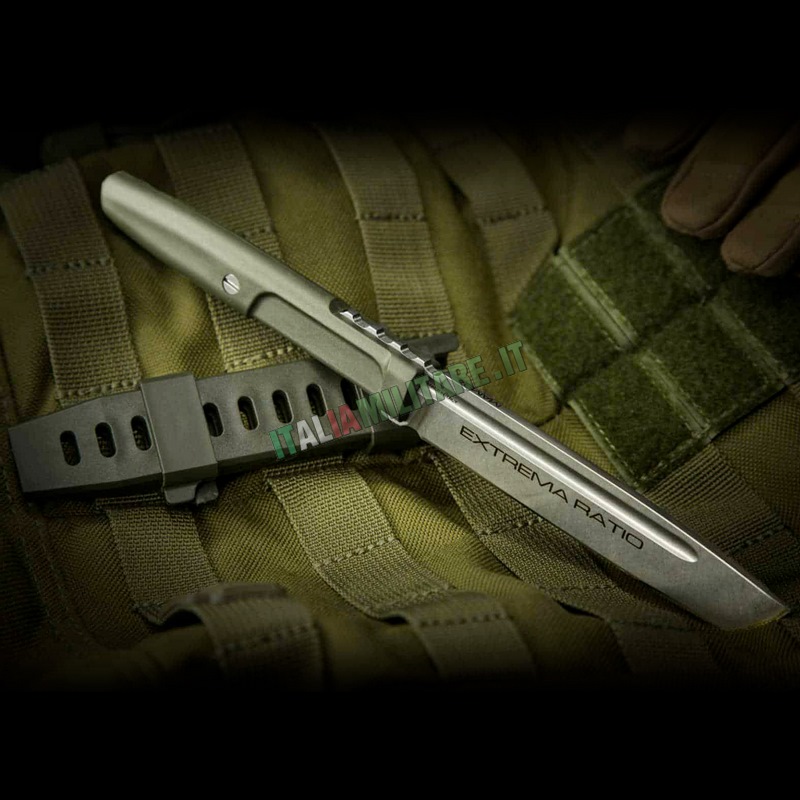COLTELLO EXTREMA RATIO MAMBAIl primo della serie ad essere dotato di innovativo fodero alloggiabile in una singola striscia del sistema M.O.L.L.E. Sistema di ritenzione livello 2. Lama tanto, resistente e leggera. Disponibile nei colori Black, Desert, HCS, Ranger Green e Wolf Grey SCHEDA TECNICA:
