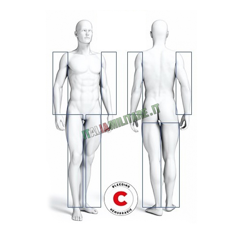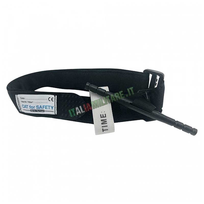 FASCIA EMOSTATICA TOURNIQUETIl laccio emostatico CAT è un dispositivo medico con certificazione CE, quindi può essere usato in ambito sanitario, di soccorso, militare, dai vigili del fuoco e dalle forze di polizia. COSA E' UN TOURNIQUET? IMPORTANTE: Il paziente ferito può essere identificato con C per un'emorragia catastrofica, con M per sanguinamento massiccio o X per il fattore 10 della coagulazione. È molto importante indicare sulla fascia bianca l'ora e la data di applicazione. Non allentare mai un laccio emostatico applicato. Chiamare i soccorsi e poi sdraiarsi o coprire la vittima. CARATTERISTICHE DEL TOURNIQUET: