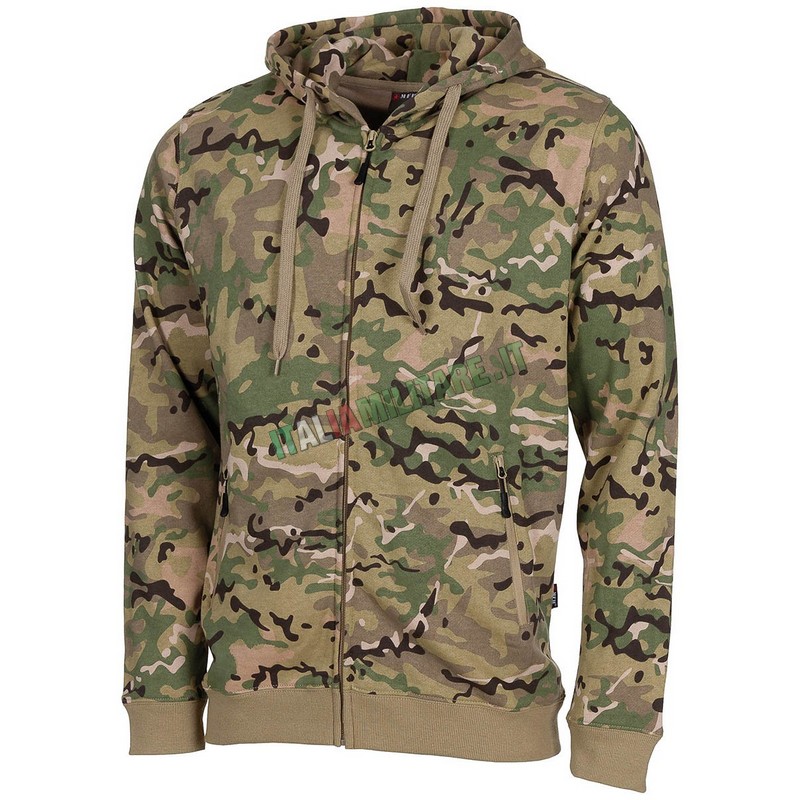 FELPA JOGGERModello di felpa basic, estremamente comoda e versatile e quindi adatta ad ogni occasione. È dotata di cappuccio regolabile con coulisse ed ha polsini elastici sul fondo e sulla manica, così da massimizzare la funzione termica. Si apre con una cerniera centrale e dispone di due tasche sui fianchi con cerniera. COLORE, A SCELTA: