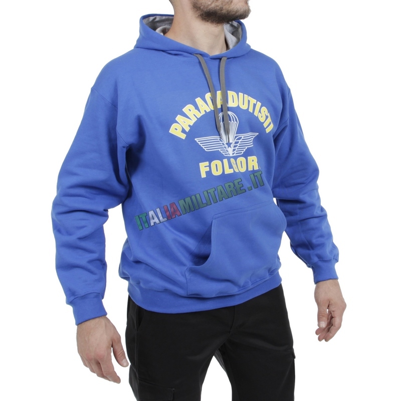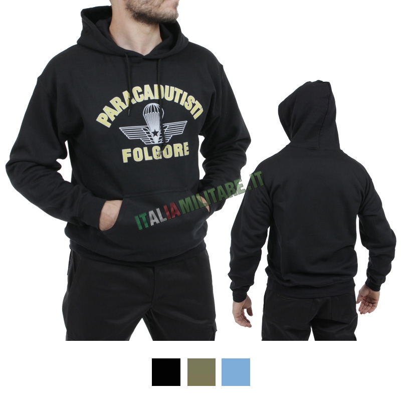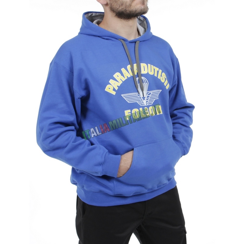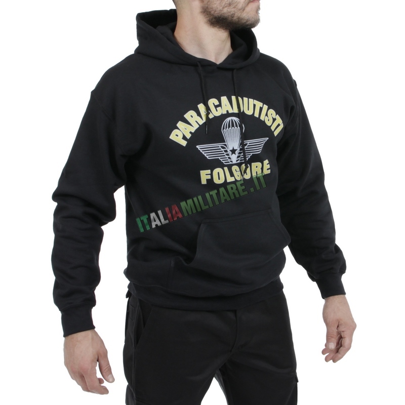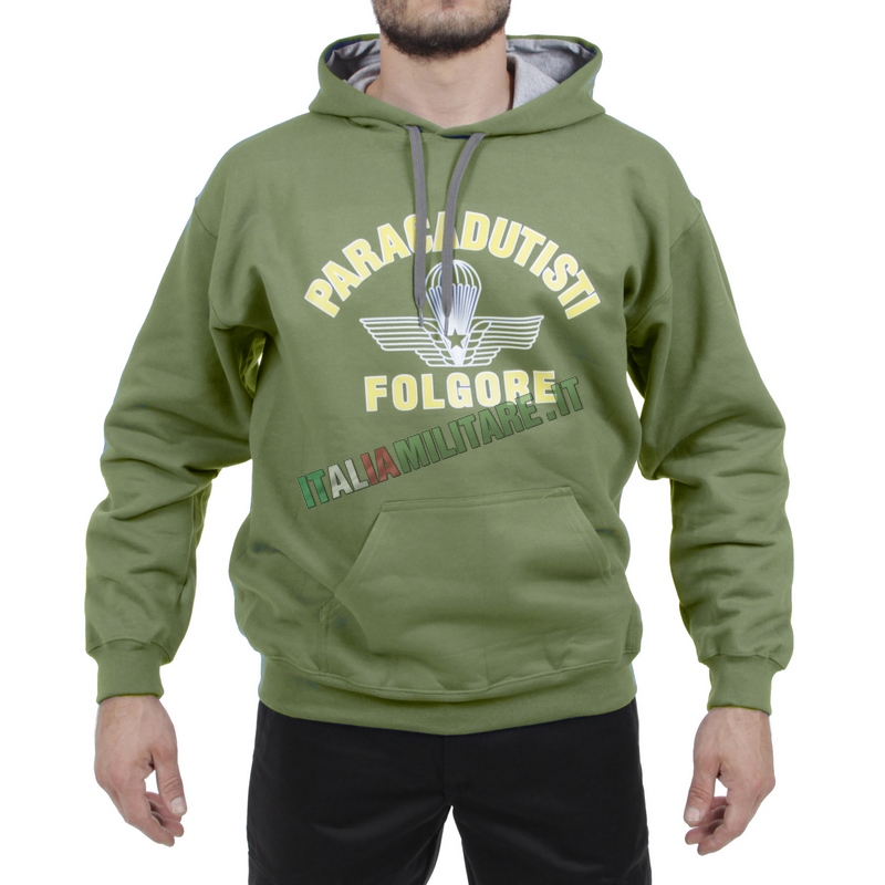 FELPA CON CAPPUCCIO FOLGOREMaglia militare prodotto ufficiale Esercito con cartellini e ologramma di libera vendita. Felpa paricollo stampata con buona qualità della stampa e del tessuto.