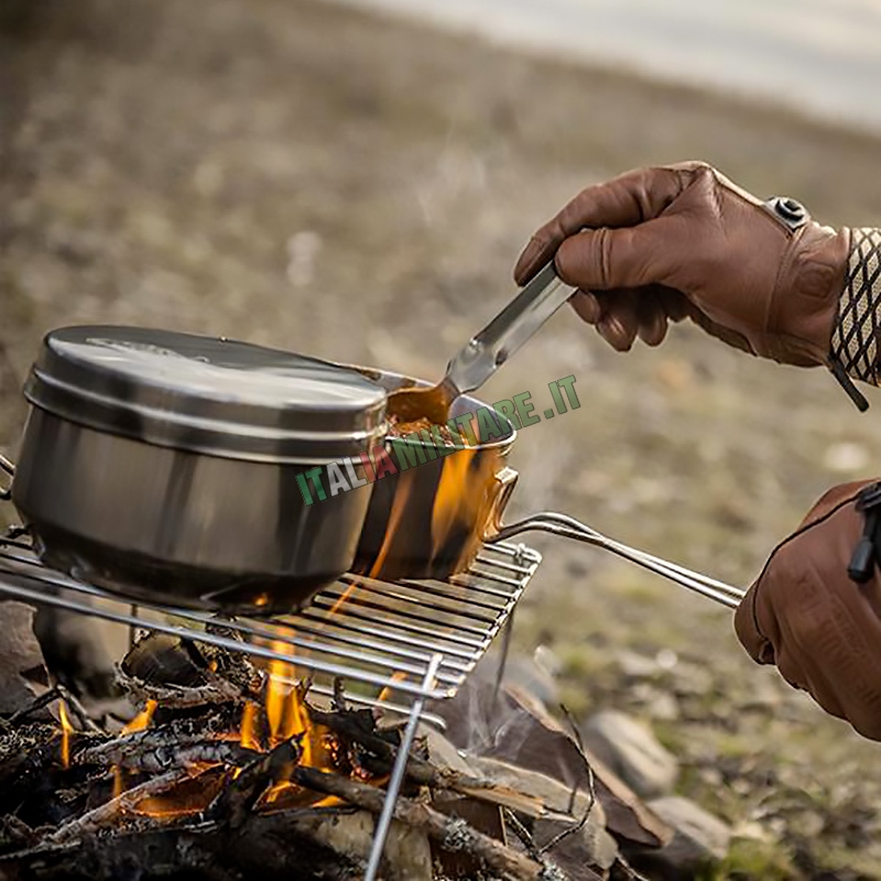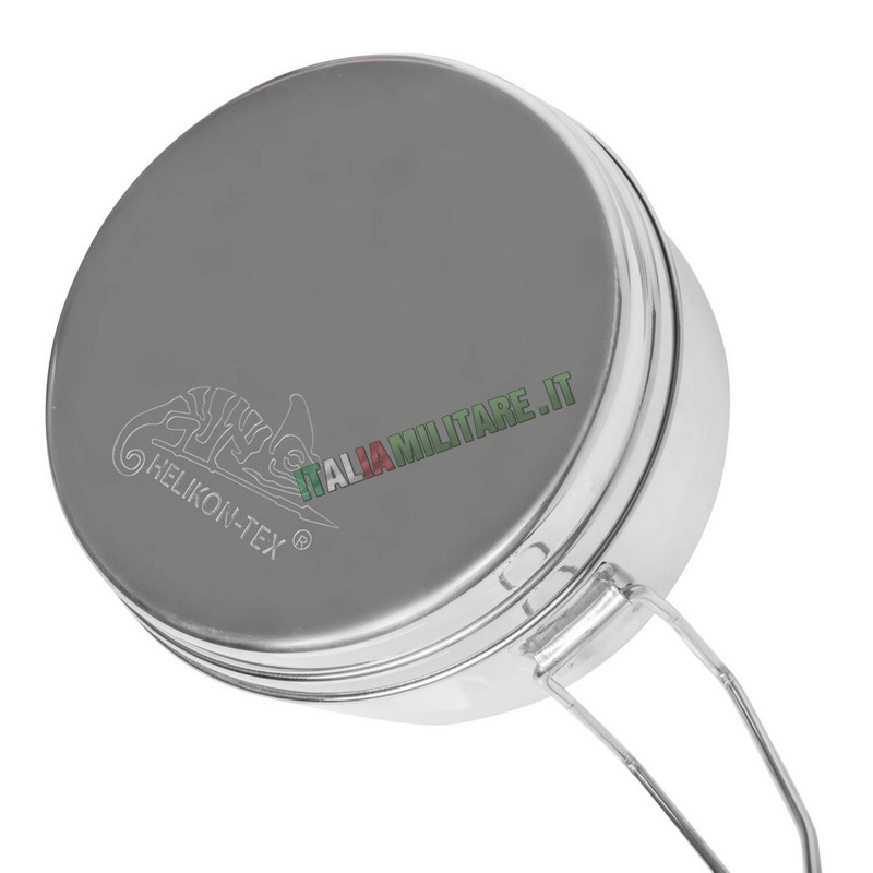 GAVETTA HELIKON-TEXQuesto set per cucinare è costruito completamente in acciaio inossidabile elettrolucidato e composto da tre pezzi: una gavetta grande, una più piccola e un coperchio che può essere usato anche come padella. Tutto il set può essere posto sul fuoco senza il rischio di bruciare i recipienti. Codice prodotto: ME-MEN-SS SPECIFICHE: