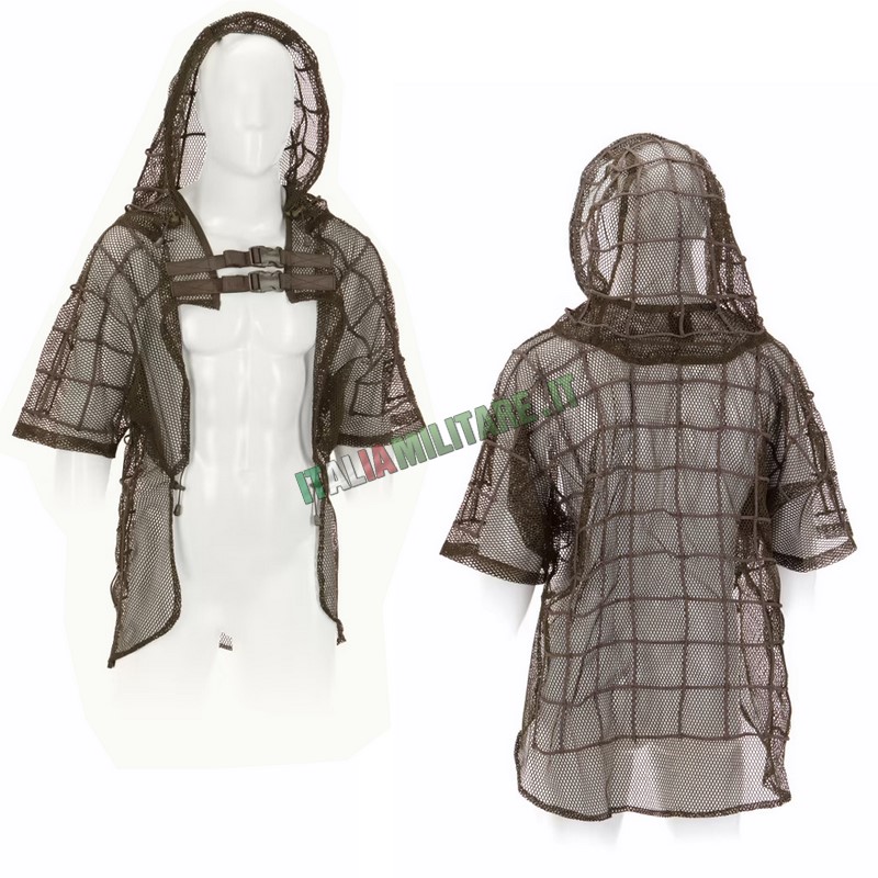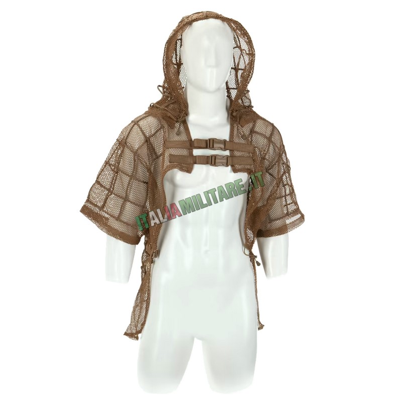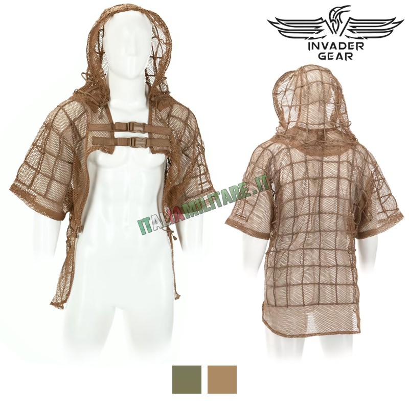 GHILLIE SNIPER BASE MESH INVADER GEARGiacca modello "Sniper Base Mesh" a rete disponibile in 2 colorazioni coyote o verde militare è stata progettata per offrire un ottima resa mimetica con il vantaggio di avere un peso ridotto e poco ingombro per il trasporto. Solitamente da indossare sopra lo strato di base dell'uniforme o dell'attrezzatura, è una giacca ghillie realizzata in tessuto leggero ma estremamente resistente. La struttura della giacca è interamente realizzata a rete quindi si ha la possibilità di applicare materiale boschivo o mimetico in base alla propria esigenza o al luogo in cui ci si trova. La ghillie è predisposta di 2 clip pettorali regolabili e di elastici integrati in vita per offrire a chi la indossa un elevato grado di comfort, con la possibilità di accedere all'attrezzatura indossata sul petto senza alcun disagio.