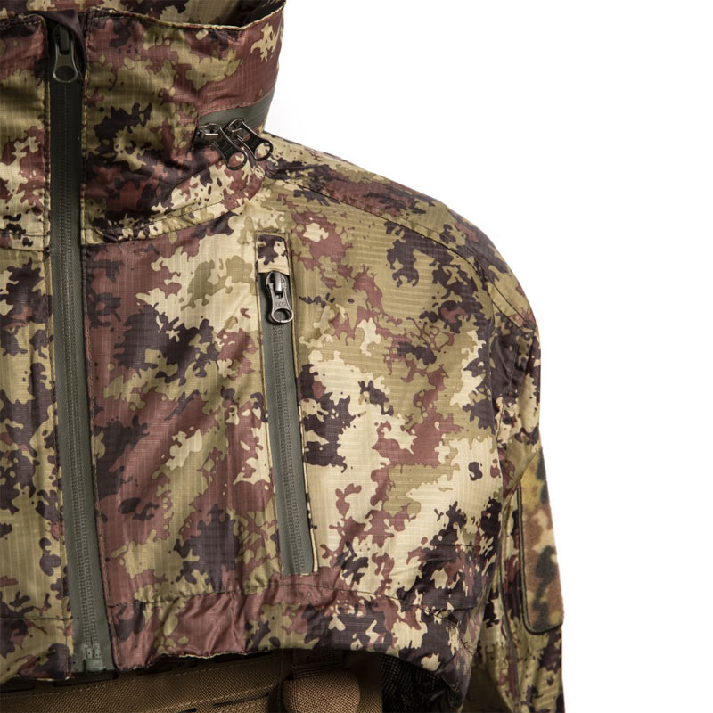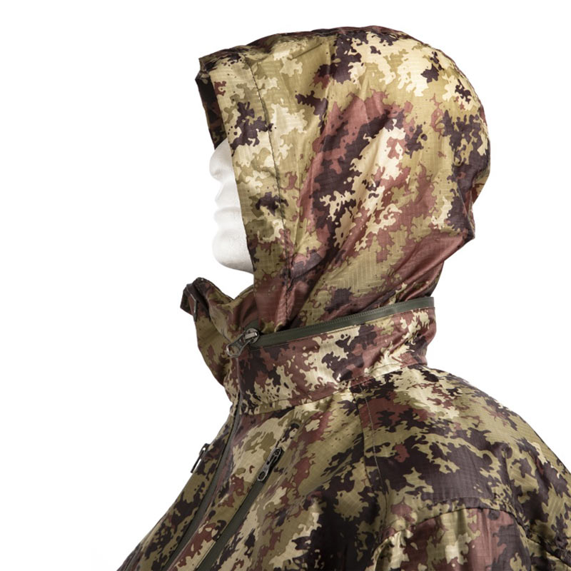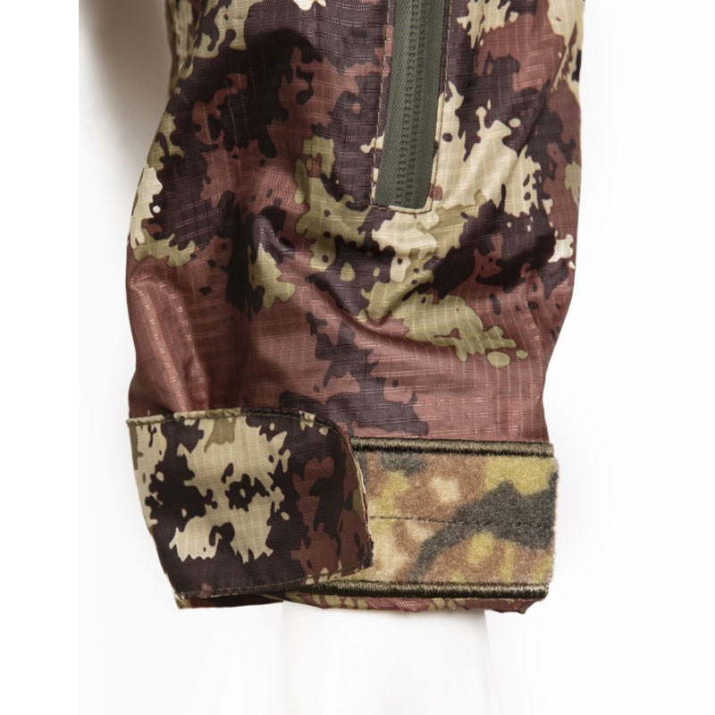 GIACCA LIGHT EVO PER GILET TATTICOQuesta speciale giacca corta, realizzata in mimetismo vegetato italiano, è progettata da Openland per consentire un accesso rapido e senza ostacoli all'attrezzatura dell'operatore, consentendogli anche di proteggersi dalle intemperie senza dover rimuovere il plate carrier. È un modello unico e innovativo, che rappresenta una grande evoluzione nel campo dell'abbigliamento tecnico-operativo militare: l'operatore non deve più scegliere tra la protezione dalle intemperie e la sicurezza sul campo, perchè con la giacca Light Evo può averle entrambe. Inoltre la giacca light evo vegetata si attacca al plate carrier grazie a dei piccoli ganci in polimero laterali, per consentire un posizionamento stabile e diminuire il rischio che acqua e vento passino al di sotto del capo. CARATTERISTICHE: