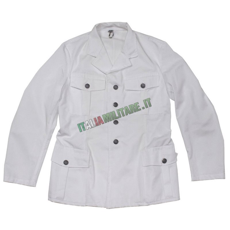 GIACCA MILITARE ESERCITO AUSTRIACOGiacca militare bianca, ex dotazione dell'Esercito Austriaco. La giacca è costruita in matriale morbido, non pesante, per questo è utilizzabile anche come sola camicia. Ha uno scollo a V con colletto ribaltato e il taglio è leggermente avvitato in vita. CARATTERISTICHE: