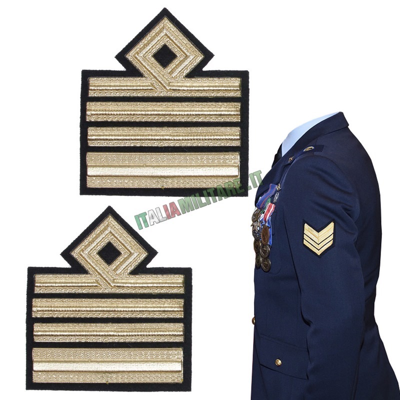 GRADI DA UNIFORME - COLONNELLOGradi militari dell'Aeronautica Militare italiana per la giacca dell'uniforme ordinaria. Il modello di gradi Aeronautica qui in vendita sono commercializzati singoli o a coppia, a scelta in base alla necessità. GRADO IN VENDITA: COLONNELLO MISURE: regolamentari di ordinanza AM I gradi in questo modello sono plastificati, flessibili, realizzati su una base di feltro, da apporre sulla manica della giacca come illustrato nella foto esemplificativa. DA NOTARE: la foto con il grado apposto sulla spalla della giacca ha il solo scopo di illustrare il posizionamento del grado sull'uniforme; il modello qui in vendita si riferisce al grado sopra descritto.