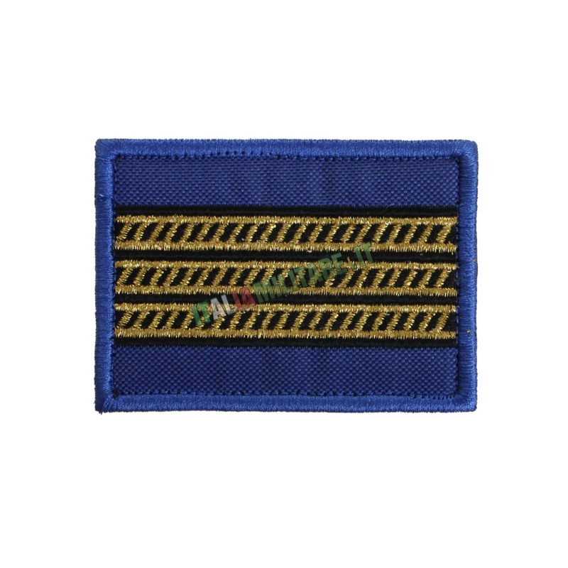 GRADO TUTA GINNICA ESERCITO DA MARESCIALLO CAPOGradi ricamati su tessuto di colore blu realizzati per essere usati in combinazione con la tuta da ginnastica - divisa sportiva dell'Esercito Italiano. DIMENSIONI: regolamentari militari, base 7 cm x altezza 5 cm Grado EI interamente realizzato in Italia, è dotato sul retro di entrambi i scratch: