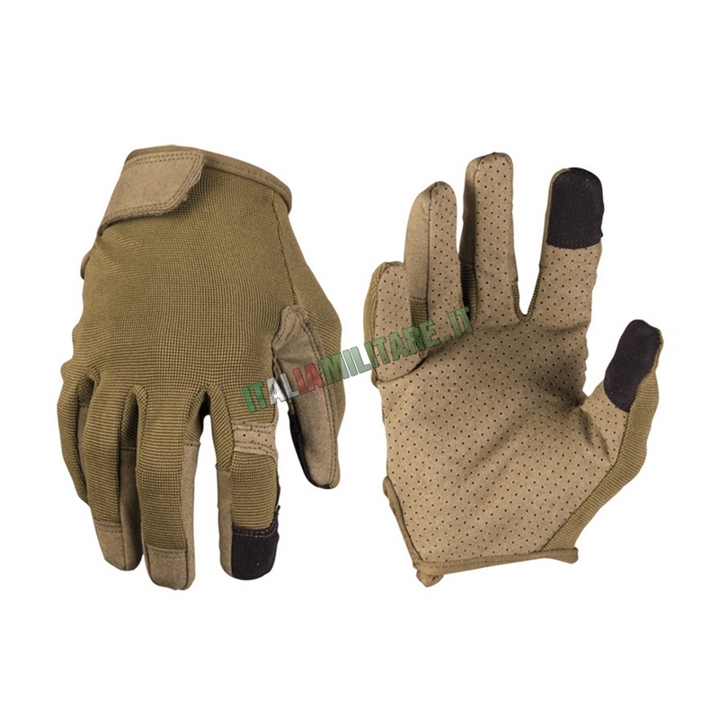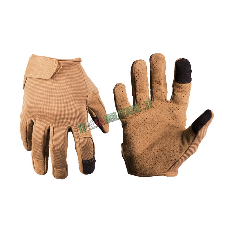 GUANTI MILITARI Combat TouchIndice e pollice con inserto "touch" per facilità di utilizzo di telefoni cellulari, tablet e apparecchiature con touch screen. Fori di ventilazione sottili sul palmo. Polsino regolabile con scratch.