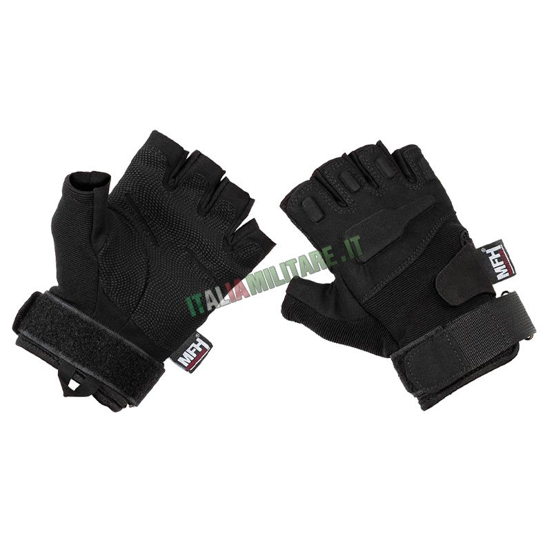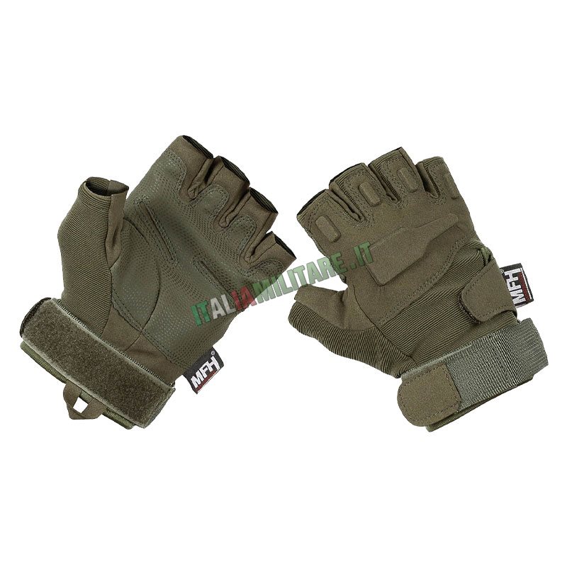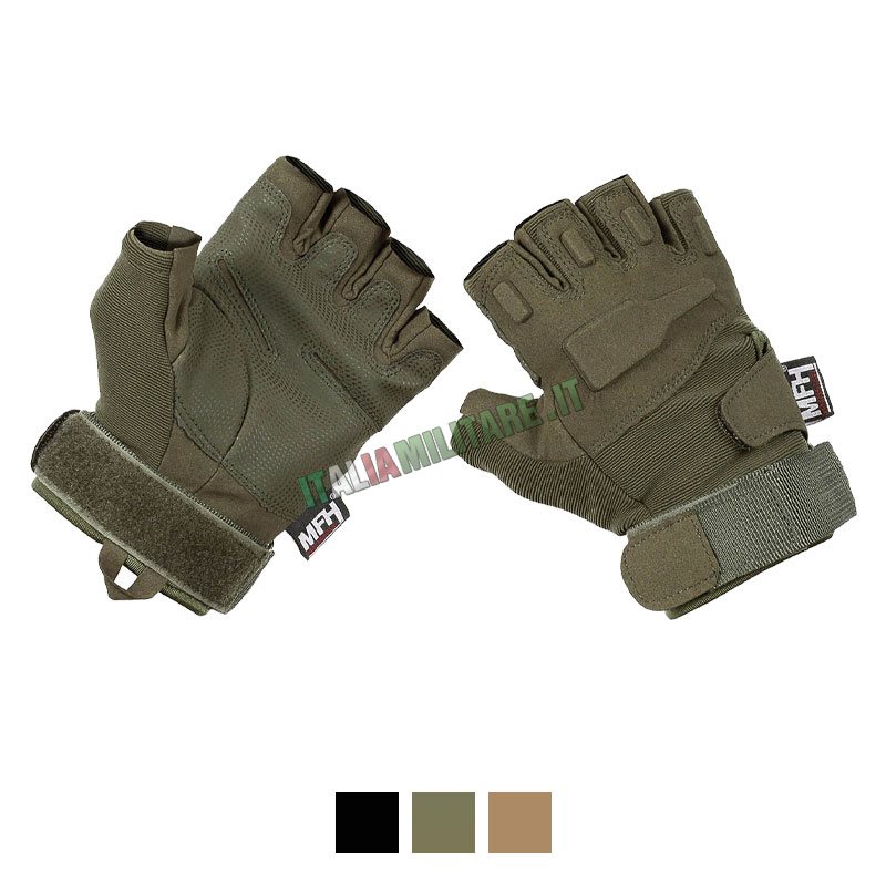 GUANTI MILITARI 1/2 DITAQuesto modello di guanti gode di una buona vestibilità grazie al tessuto elastico sul dorso della mano, mentre sul palmo il rivestimento in ecopelle garantisce un ottimo attrito, anche su superfici bagnate. Asciuga rapidamente può essere regolato sul polso grazie alla presenza dello scratch, così da calzare più comodo. Sul dorso, le nocche sono imbottite in silicone in modo da proteggere gli arti dagli urti. COLORE:
