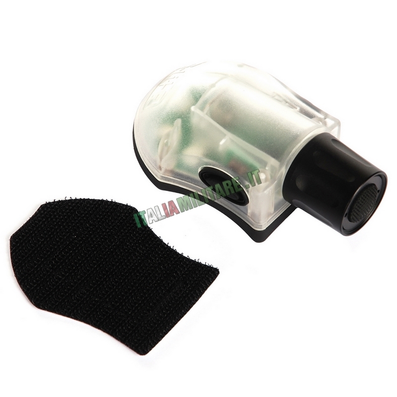 LUCE MILITARE DI SEGNALAZIONE E COMUNICAZIONEModello Manta Strobe Light EX262, lo si usa per comunicare a distanza a mezzo di impulsi comandati o anche per segnalazione di emergenza in luce IR o a led. Si accende dal tasto ON/OFF quindi emette una vibrazione che segnala l'accensione del dispositivo in modalità IR quindi visibile solo con visori infrarossi, premendo poi contemporaneamente i tasti laterali una seconda vibrazione attiva la funzione strobo a led selezionabile in 5 modalità premendo contemporaneamente in sequenza i tasti laterali. Idoneo anche per impiego professionale. Grazie al scratch (compreso maschio e femmina) è molto prato per essere attaccata principalmente su elmetto ma anche a uniformi, tattici, zaini e gibernaggi in genere. FUNZIONI: