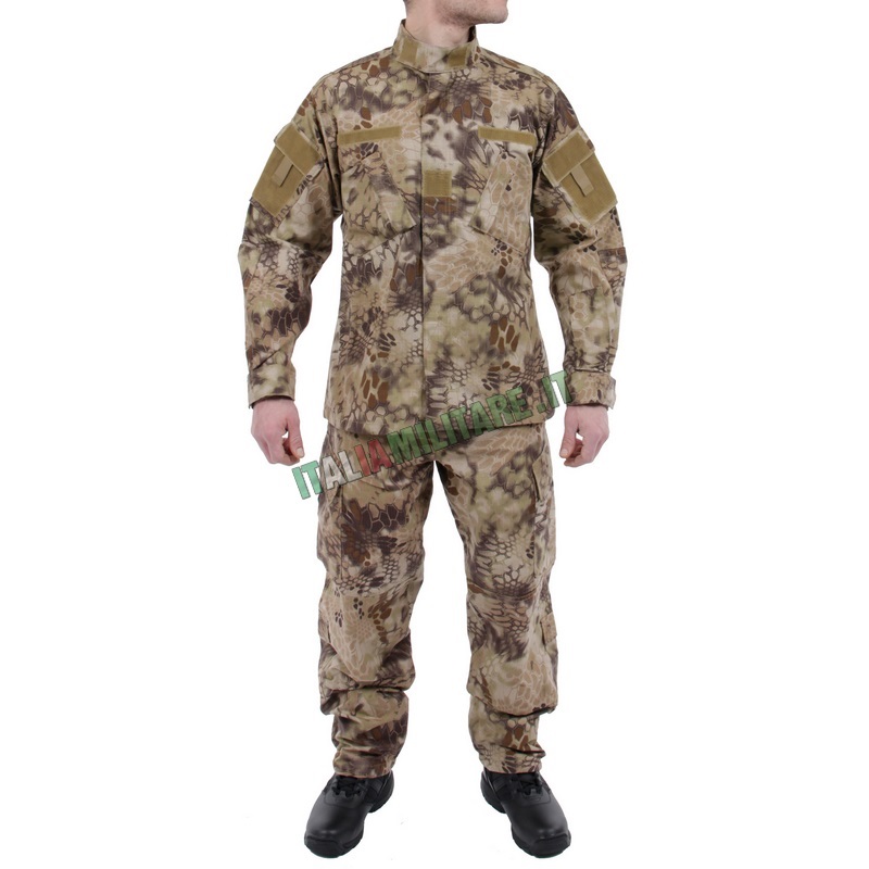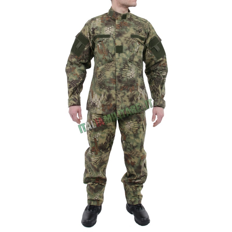 MIMETICA MILITARE COMPLETA: GIACCA E PANTALONEMimetica ad uso militare in cotone 100% Rip-Stop (anti-strappo) e taglio COMBAT. La caratteristica del tessuto Rip-Stop è quella di impedire ad eventuali tagli del tessuto di propagarsi e dare origine ad uno strappo che rovinerebbe definitivamente il capo. A questo scopo nel tessuto viene inserito ad intervalli regolari un robusto filato nel senso della trama e dell'ordito che agisce come rompiforza. Possibilità di scegliere taglie differenti per giacca e pantalone! Caratteristiche della giacca:
