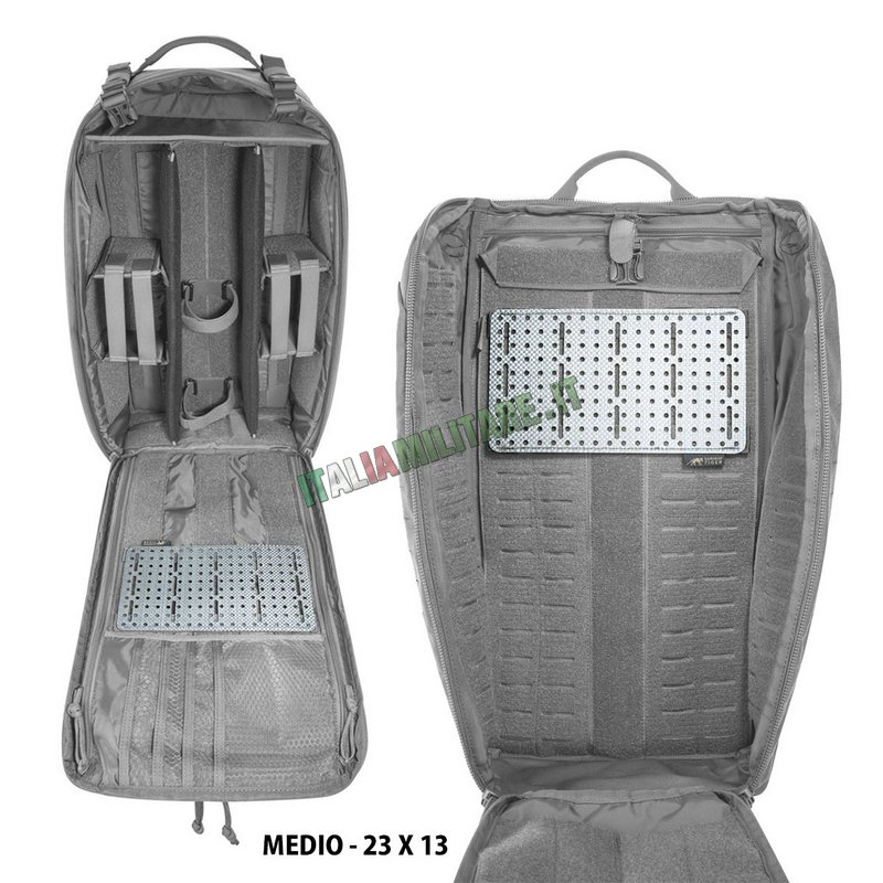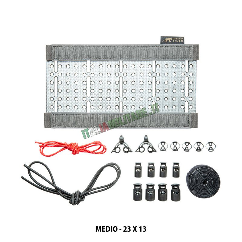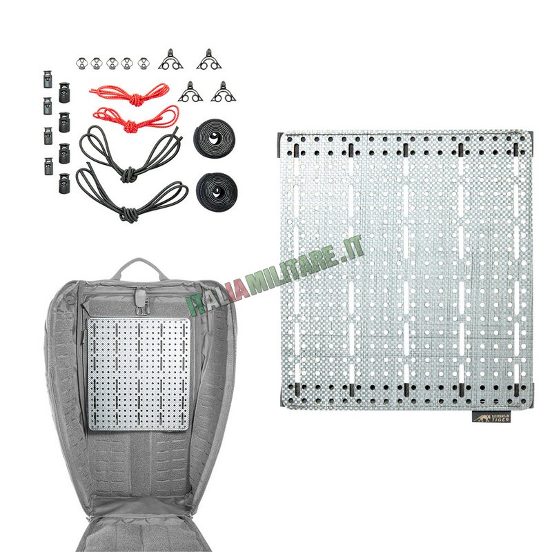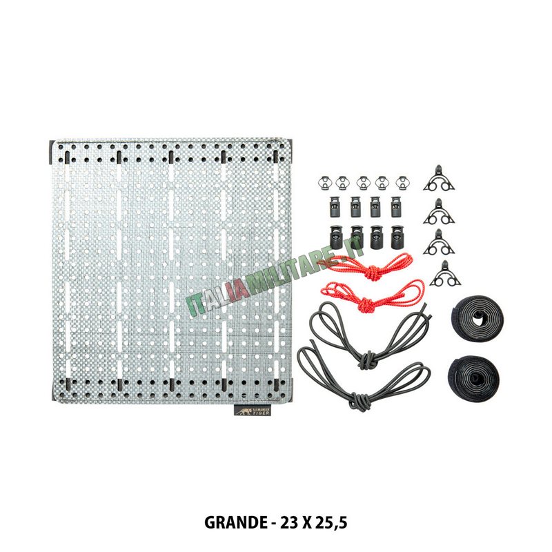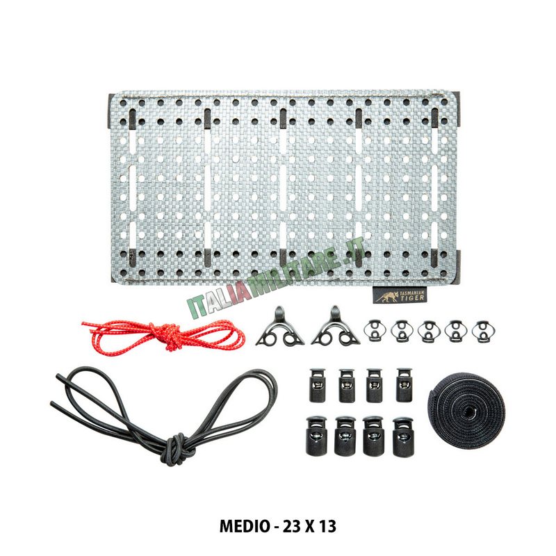 SRPP PANEL TASMANIAN TIGERPannelli modulari Tasmanian Tiger a taglio laser, studiati per l'organizzazione degli spazi all'interno di zaini e borse. I pannelli sono costruiti in Tegris, ovvero polipropilene auto-rinforzato (SRPP: Self-Reinforced PolyPropylene): un materiale termoplastico di nuova generazione che si distingue dagli altri per l'estrema resistenza agli urti e la leggerezza. In base alla struttura della borsa o dello zaino nel quale vengono inseriti, questi pannelli possono essere fissati utilizzando i materiali inclusi: corda elastica, vari fermacorda e nastro a scratch. MODELLO, A SCELTA: