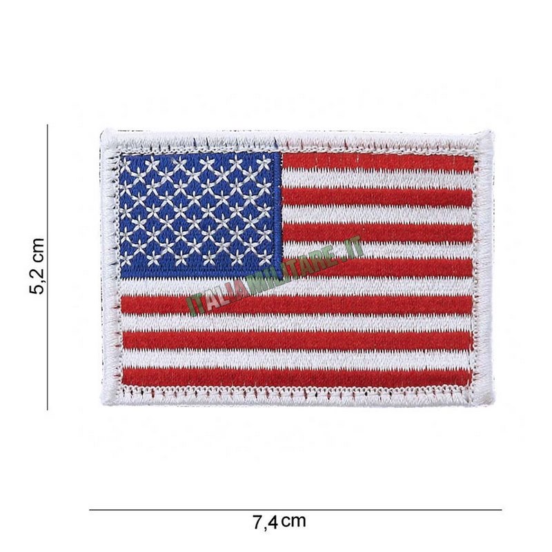PATCH - TOPPA: BANDIERA AMERICANAMATERIALE: TESSUTO RICAMATO SCRATCH SU RETRO: SI MISURA: BASE 7,4 CM X ALTEZZA 5,2 CM MODELLO, A SCELTA: