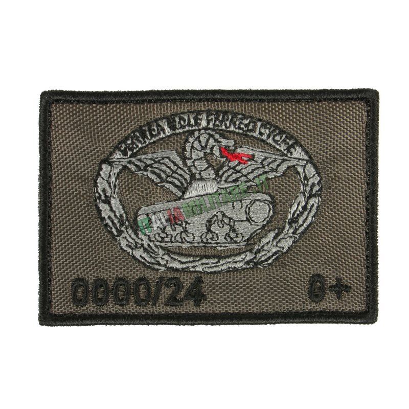 PATCH - TOPPA: BREVETTO CARRISTAPatch - toppa ricamata con il nuovo brevetto da Carrista dell'Esercito Italiano "Ferrea Mole Ferreo Cuore", da indossare sull'uniforme di servizio e da combattimento, sul lato destro del petto, sopra la scritta Esercito. Questo brevetto è dedicato specificamente al comandante di reparti e unità organicamente dotati di mezzi corazzati e al capicarro (o piloti) di mezzi corazzati. Caratteristiche di ricamo e personalizzazione come da foto: NUMERO BREVETTO E GRUPPO SANGUIGNO MODALITÀ: compila l'apposito spazio con i dati da ricamare (numero brevetto) e seleziona il gruppo sanguigno dal menu a tendina, quindi procedi all'ordine qui sul sito. PER ACQUISTARE PIÙ PEZZI: ESEGUIRE LA PROCEDURA SOPRA DESCRITTA PIÙ VOLTE, COSÌ DA INSERIRE OGNI VOLTA LA DIVERSA PERSONALIZZAZIONE NECESSARIA MATERIALE: TESSUTO RICAMATO, ricami richiesti dalla direttiva ministeriale. SCRATCH SU RETRO: SI MISURE (regolamentari di ordinanza):