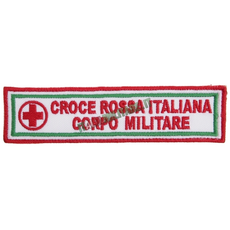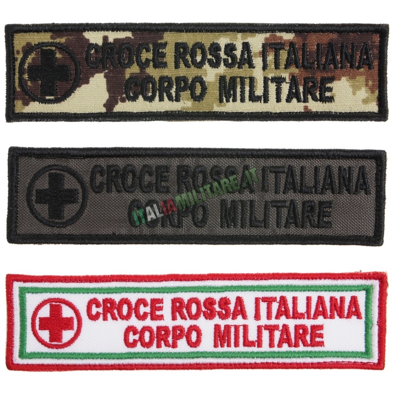 PATCH CROCE ROSSA ITALIANA - CORPO MILITAREToppa della Croce Rossa - Corpo Militare ricamata, prodotta in Italia e completa di scratch, disponibile nei colori mimetico vegetato, verde e bianco come da foto per l'uniforme da servizio e combattimento.