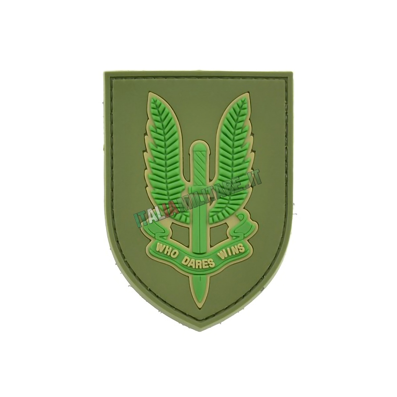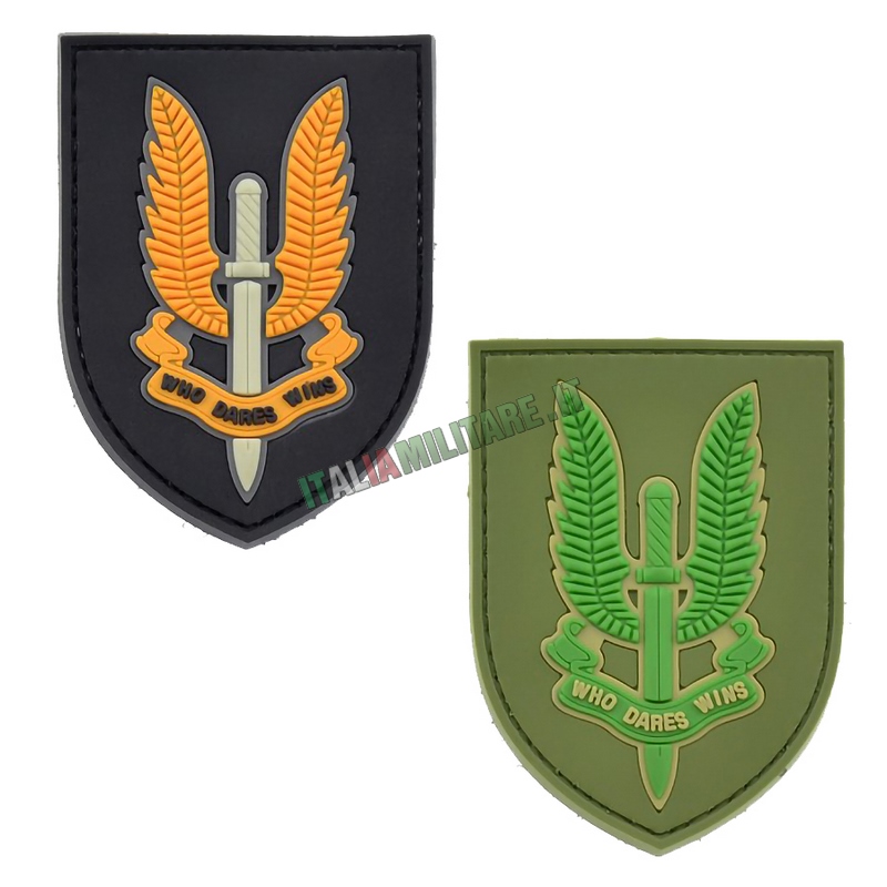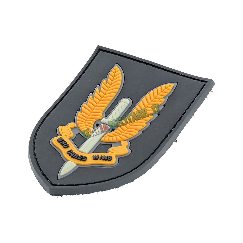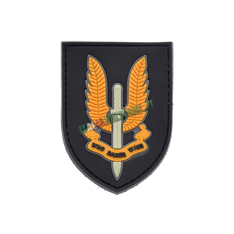 PATCH - TOPPA: SASPatch in PVC dello Special Air Service inglese, ovvero un corpo di forze speciali dell'Esercito Britannico. Sulla patch è riportato lo stemma SAS con il relativo motto "Who Dares Wins". MATERIALE: PVC SCRATCH SU RETRO: SI MISURA (PUNTI MASSIMI): 7,5 x 5,5 CM COLORE, A SCELTA: