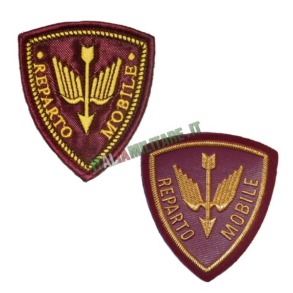 SCUDETTO REPARTO MOBILE POLIZIAPatch della Polizia di Stato - Reparto Mobile interamente prodotto in Italia e completo di scratch sul retro; modello di toppa di ordinanza da apporre sulla spalla sinistra dell'operatore in vestizione con la tuta da OP, estiva con la polo e invernale con il parka. IMPORTANTE: questo articolo è un prodotto ufficiale autorizzato da parte della Polizia di Stato, viene venduto con cartellino che ne indica il codice di contratto autorizzativo alla produzione. La patch del Reparto Mobile PS è disponibile e quindi in vendita in 2 versioni e completa di scratch: