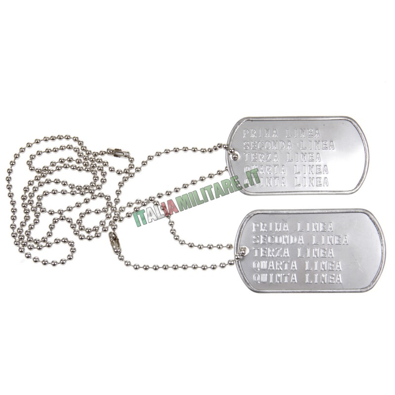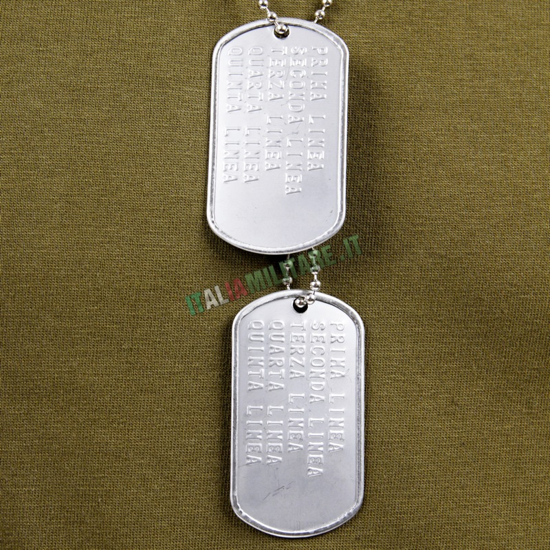 Le cosiddette piastrine militari, o più correttamente piastrine identificative, sono in uso dal primo '900 e sono 2 piccole piastre metalliche sulle quali vengono riportati, mediante incisione o punzonatura, i dati del soldato che le indossa. In ambito militare servono per il riconoscimento in caso di decesso o per conoscere dati come il gruppo sanguigno in caso di ferite in battaglia o situazioni di emergenza ma negli ultimi anni hanno preso piede anche in ambito civile in quanto la loro personalizzazione le rende idonee a comunicare i più svariati messaggi, credi e ideologie. La caratteristica distintiva delle piastrine militari è la doppia registrazione (ovvero sono due piastrine identiche con i soliti dati) e la possibilità di staccarne una: questa funzionalità veniva usata al fine della segnalazione del decesso in quanto la piastrina staccata veniva consegnata all'autorità competente mentre l'altra rimaneva sul corpo. Normalmente, sempre in ambito militare, le piastrine riportano nome, cognome, data di nascita ed una codifica del comune di nascita, oltre al numero di matricola, la confessione religiosa, la cittadinanza e il gruppo sanguigno. In ambito civile, le piastrine possono essere personalizzate su tue specifiche; le uniche limitazioni sono date dal numero di caratteri ammessi. MATERIALE: ACCIAIO INOX COLORE: METALLO, NATURALE, COME DA FOTO Da oltre 10 anni Italia Militare si occupa della vendita online di abbigliamento militare, forniture militari e Piastrine Militari Personalizzate vantando una grande esperienza e un magazzino di mille metri quadrati con oltre undicimila prodotti militari disponibili a stock. Supportiamo e riforniamo di abbigliamento militare e accessori militari le nostre forze armate, forze dell'ordine e operatori di sicurezza, anche nelle missioni all'estero. I nostri prodotti sono destinati a militari, outdoor, tempo libero, soft-air e ai collezionisti. Puoi ordinare Piastrine Militari Personalizzate attraverso web, E-mail e telefono. Se hai difficoltà a trovare Piastrine Militari Personalizzate utilizza il campo ricerca per filtrare i risultati. Tutti i prodotti del settore provengono dai più importanti e affidabili fornitori del settore militaria e outdoor. La soddisfazione del Cliente è importante per Italia Militare e per questo la consegna di Piastrine Militari Personalizzate avviene nel più breve tempo possibile.