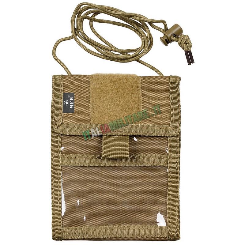 PORTA ID MILITARE DA COLLO O TASCAPORTA DOCUMENTI, SOLDI E TESSERINO IDENTIFICATIVO Articolo specifico per militari e forze dell'ordine, può essere utilizzato al collo come un identificativo oppure normalmente in tasca come un normale portafoglio.