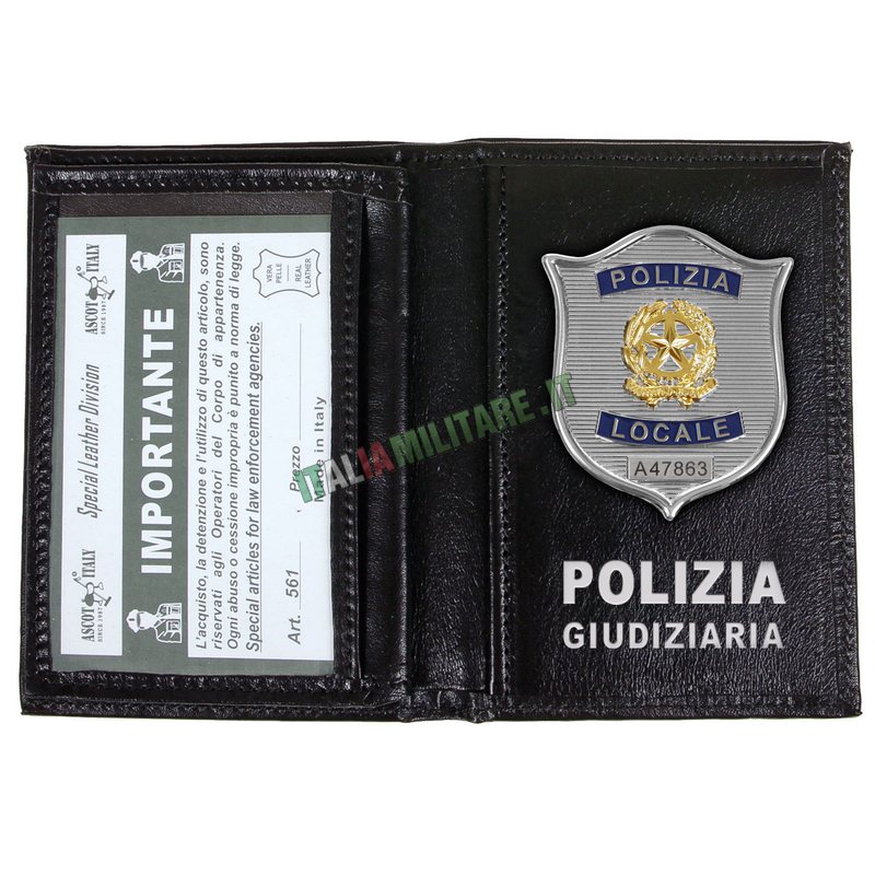 PORTAFOGLIO OCCULTABILE PORTA DISTINTIVO POLIZIA LOCALE/GIUDIZIARIA RI 561Portafogli e porta placca Polizia Locale/Giudiziaria verticale Ascot con porta tessera identificativa e porta placca occultabile dietro uno scomparto porta carte di credito, realizzato in Italia in pregiata vera pelle. Può essere aperto e grazie allo scomparto che copre la placca e la tessera di riconoscimento, risulta idoneo per l'uso di tutti i giorni, rendendolo idoneo per identificarsi solo al bisogno. Distintivo Polizia Locale opzionale, dotato di molla armonica sul retro e di numero seriale registrato. Il portafoglio può essere scelto con scritta "Polizia Locale" o "Polizia Giudiziaria", mentre la placca AS45 ha sempre la scritta "Polizia Locale". Portafogli di ottima qualità, realizzato in Italia con vera pelle che gli conferisce un'ottima resa estetica ed una grande resistenza all'uso.