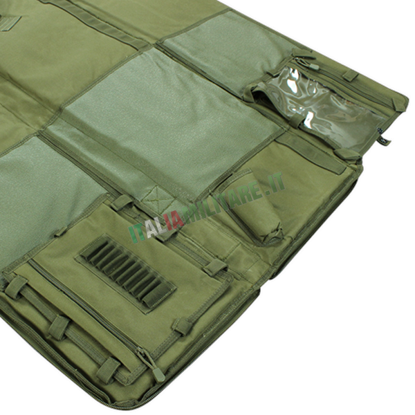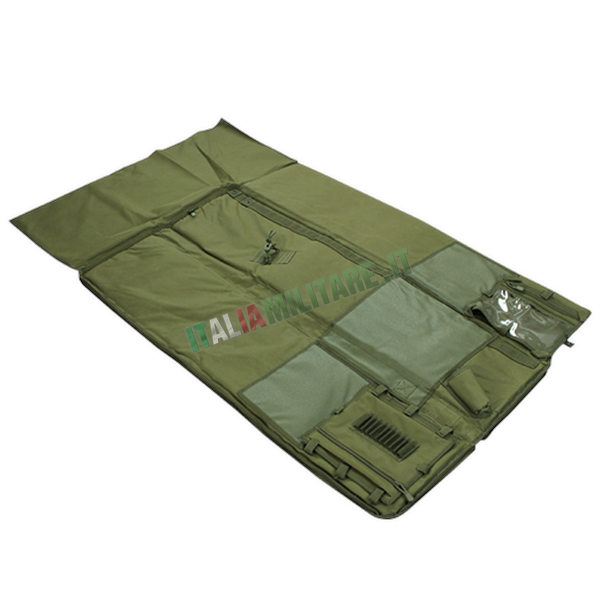 PORTA FUCILE CON MATERASSINO CONDOR VERDEModello portafucile SNIPER 131: ideale per l’operatore che richiede comfort e il trasporto di qualsiasi accessorio necessario; la borsa è fornita di maniglia, spalline e imbottitura per una maggiore comodità di utilizzo e le tasche consentono il carico di materiale aggiuntivo.