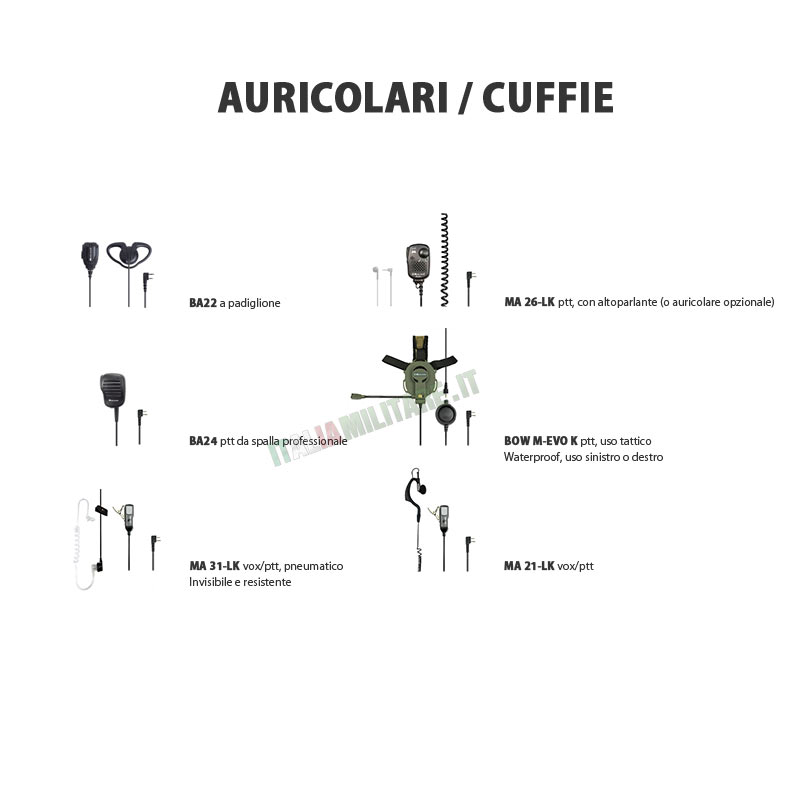 Per la ricetrasmittente Midland CT-890 sono disponibili una serie di auricolari che ne permettono l'uso tattico o comunque facilitato, abbandonando la necessità di tenere la ricetrasmittente in mano.