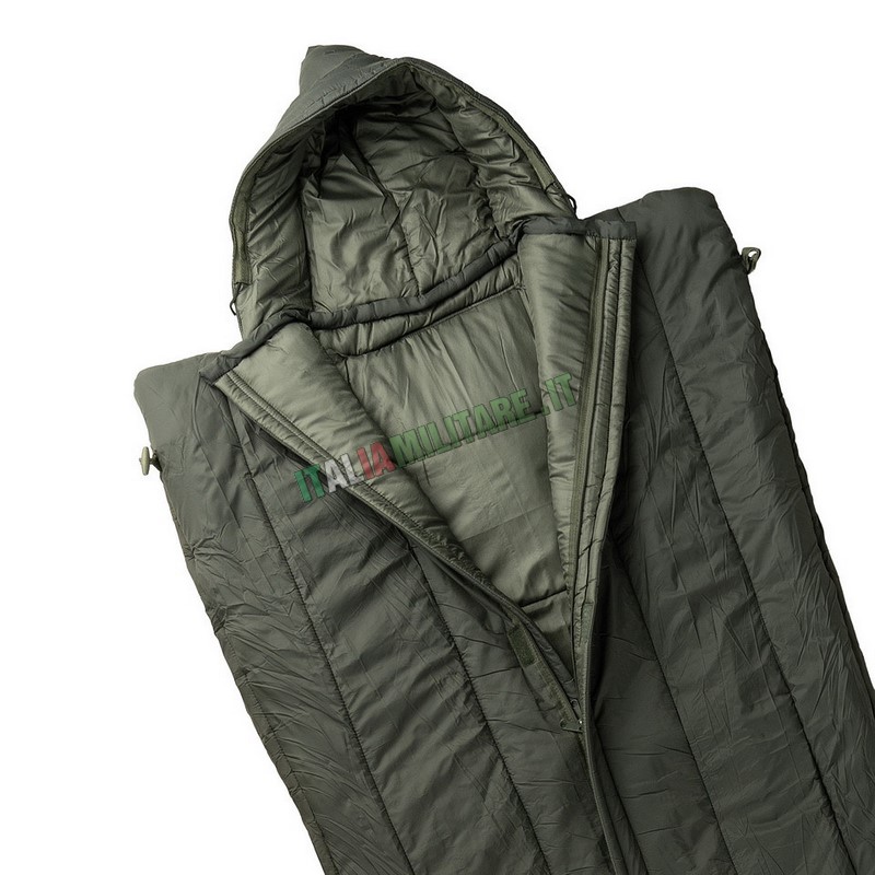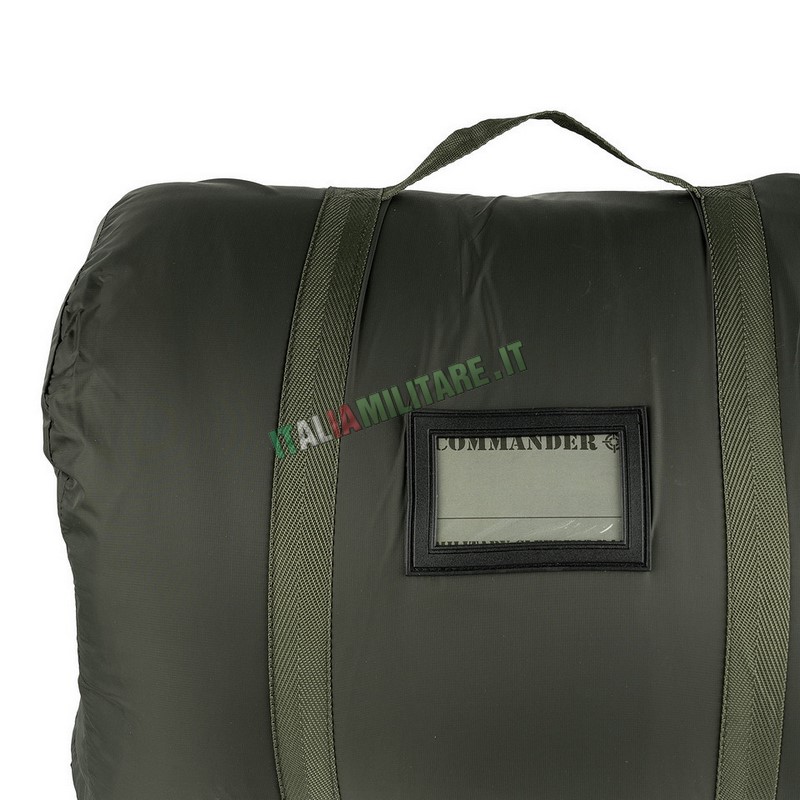 SACCO A PELO COMMANDERSacco a pelo militare comodo e caldo, dotato di cappuccio regolabile. All'interno è imbottito in fibra cava, che consente al corpo di rimanere al caldo fino a -15°C. L'interno del sacco è invece realizzato in materiale Pongee, un tessuto sintetico morbidissimo e liscio al tatto e molto robusto. CARATTERISTICHE: