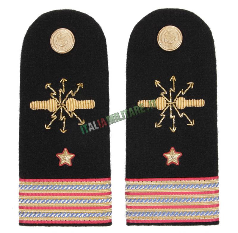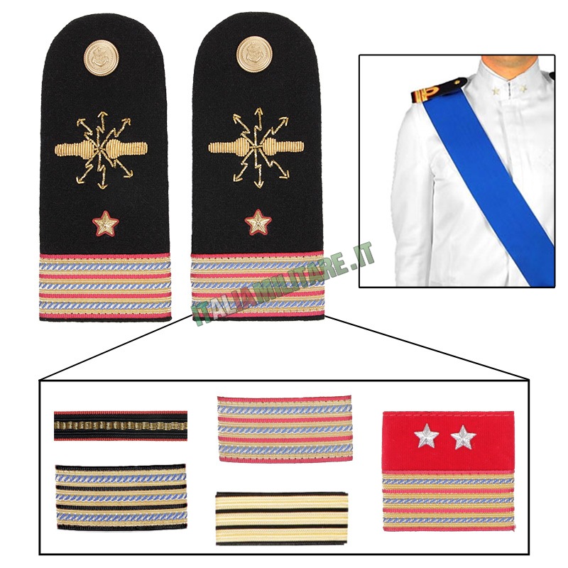 Le spalline si distinguono per il pregio della realizzazione, grazie al ricamo altamente particolareggiato e alla qualità del filo usato. COLORI E FREGIO DELLE SPALLINE SONO D'ORDINANZA, tessuto della lastra blu. MADE IN ITALY