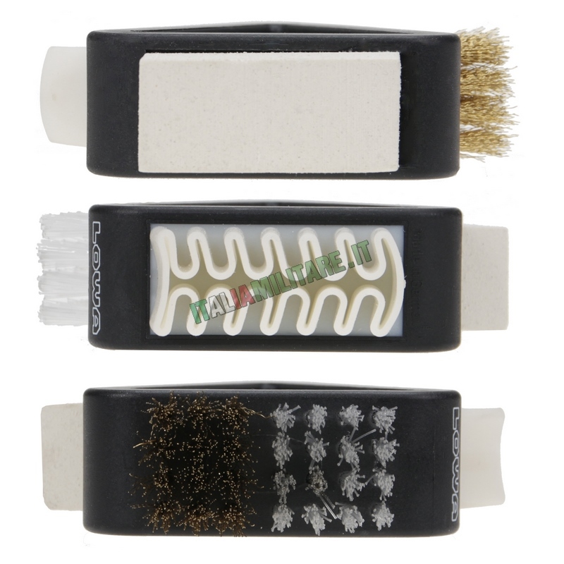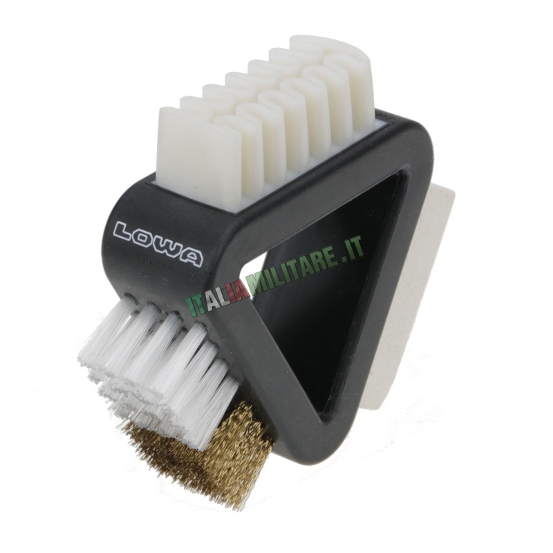 SPAZZOLA PER MANUTENZIONE CALZATURELa spazzola triangolare LOWA è una spazzola versatile da utilizzare per rimuovere macchie e sporco dalla pelle delle scarpe e facile da trasportare, grazie alle dimensioni ridotte. Adatta a tutti i tipi di calzature, militari e non come anfibi, stivali, scarpe, antinfortunistica, ginniche, ecc.