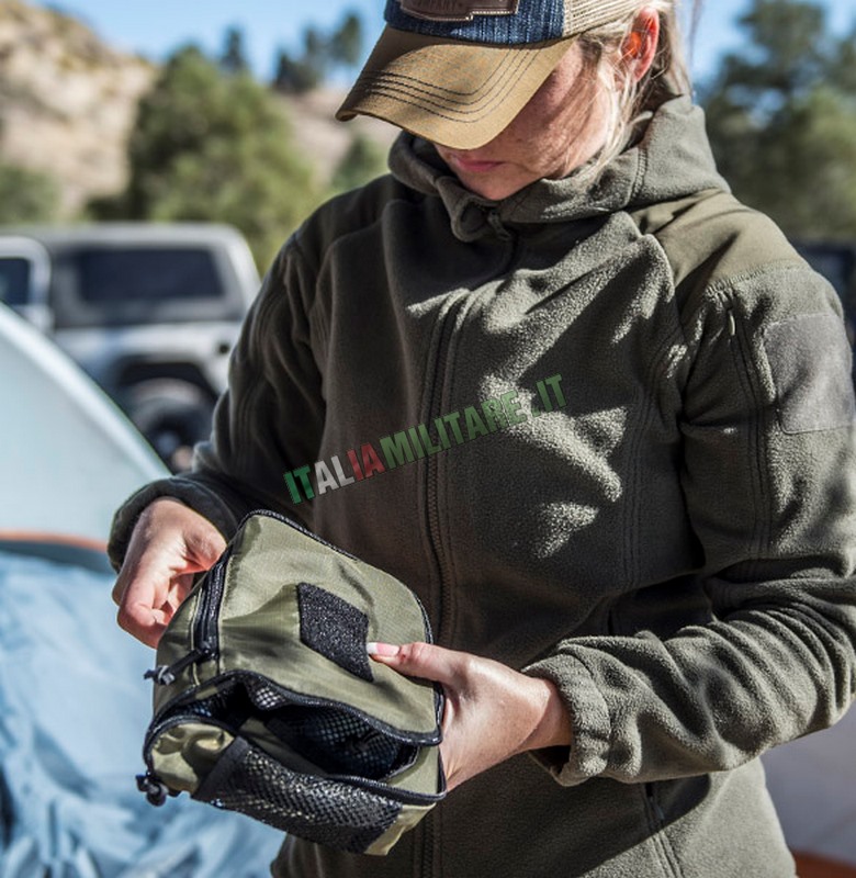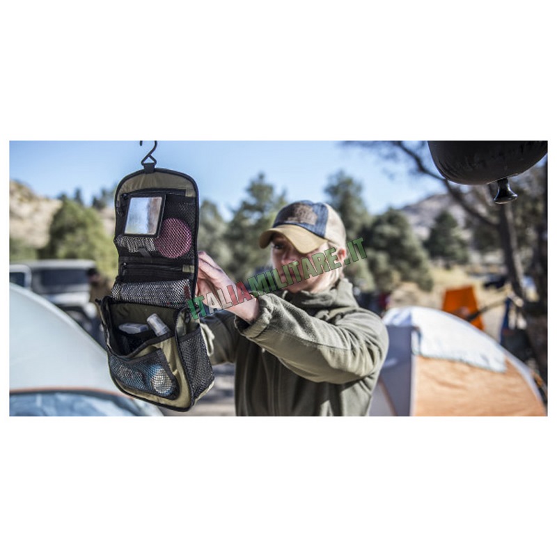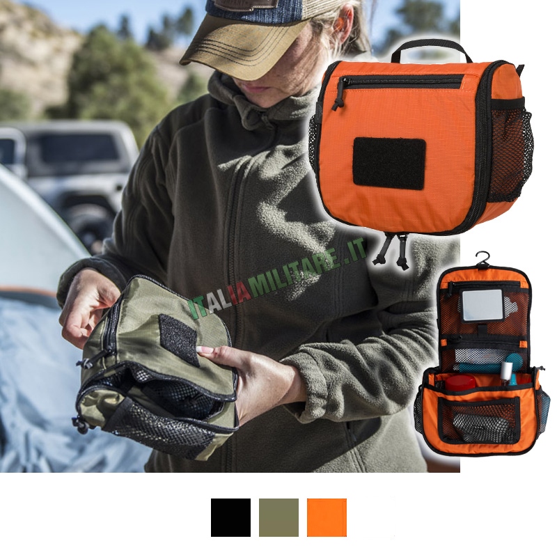 BEAUTY CASE HELIKON-TEXLa tasca "Travel Toiletry Bag" di Helikon è un accessorio compatto e leggero apribile con cerniera, studiato per contenere tutti i propri effetti da bagno durante un viaggio o un soggiorno all'aperto. Sia all'interno sia all'esterno dispone di tasche a rete e dunque consente un'organizzazione precisa degli strumenti da bagno. Per una versatilità ancora maggiore la borsa è dotata di specchio staccabile e di un piccolo gancio che può essere utilizzato per appenderla all'interno di una tenda, sopra una porta, ad un albero, ecc. CARATTERISTICHE: