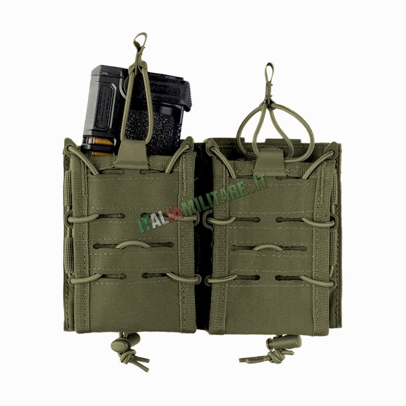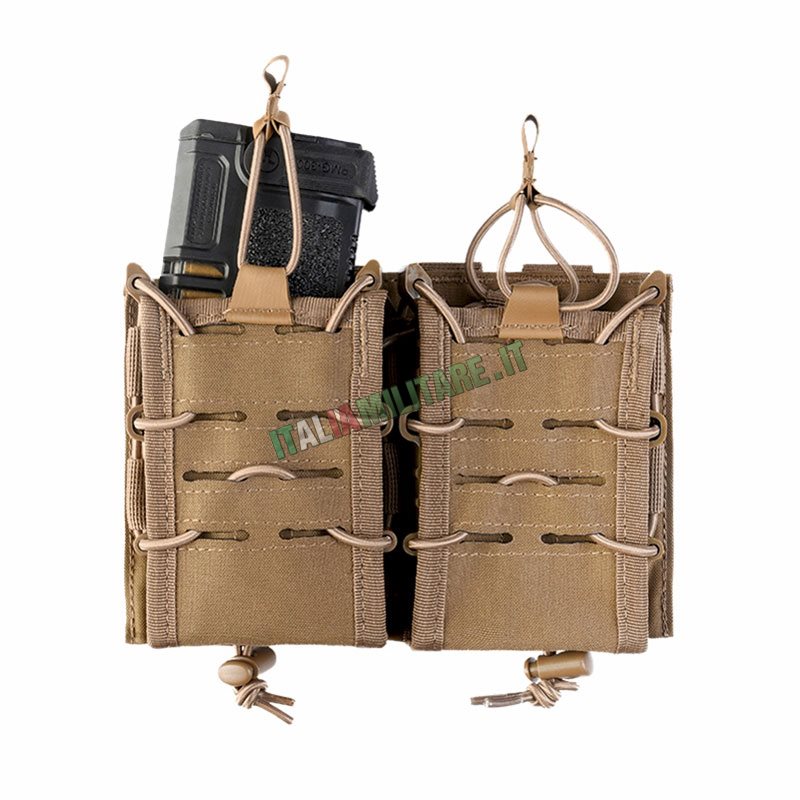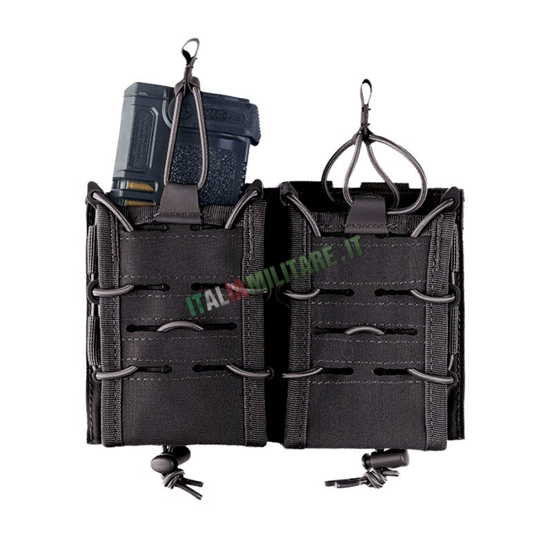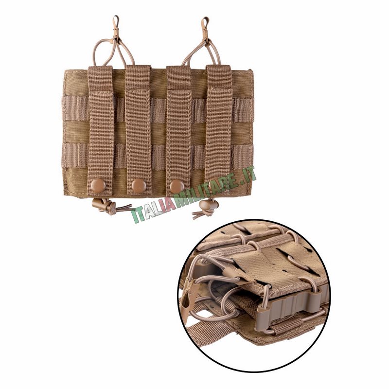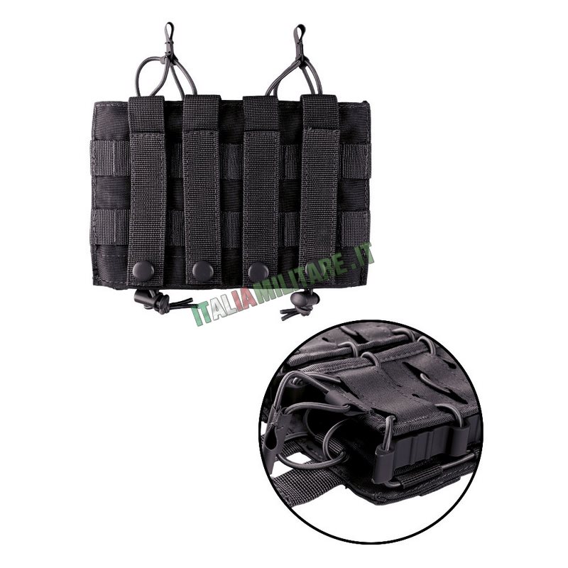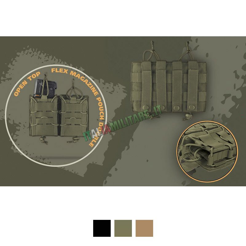 TASCA PORTA CARICATORI "Open Top FLEX"Modello di tasca militare porta caricatore doppio FLEX aperta sopra con elastico di ritenzione per una presa rapida e un alloggio sicuro dei caricatori. Caratteristica della tasca FLEX sono gli inserti in plastica sui lati, che rendono rigida la struttura del porta caricatore ma permettono di regolarne l'ampiezza in maniera flessibile.