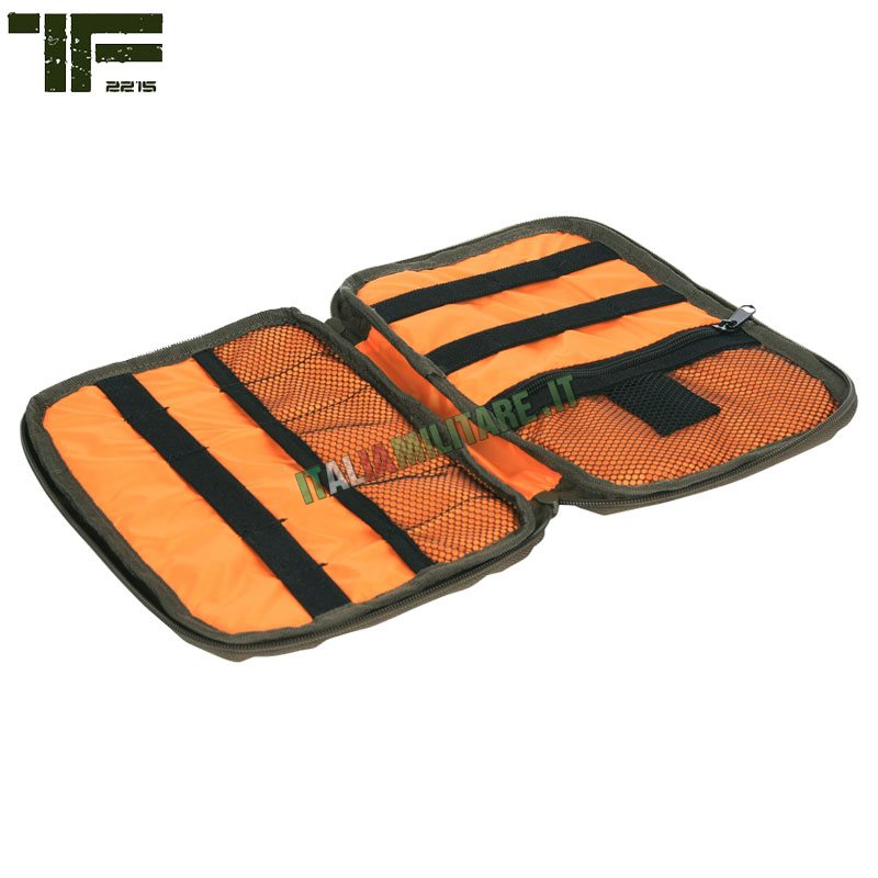 TASCA TF 2215® EDCTasca militare Task Force 2215® modello "EDC", è stata progettata per trasportare quotidianamente gli accessori digitali, ma in generale qualsiasi oggetto di medie o piccole dimensioni. Realizzata in Cordura, ha una chiusura con cerniera e una fodera imbottita, ma anche vari slot elastici e in rete per ospitare accessori come cavi USB, matite, batterie, strumenti, schede di memoria SD, ecc. All'esterno si trova uno scomparto con zip in cui si inserisce facilmente un telefono cellulare, passaporto o altri piccoli documenti. Grazie al suo formato maneggevole, si adatta a qualsiasi borsa ed è ideale per i viaggi ma anche per un utilizzo quotidiano (Every day Carry - EDC). NOTA: Attrezzature e accessori illustrati nelle foto non sono inclusi con la borsa. CARATTERISTICHE: