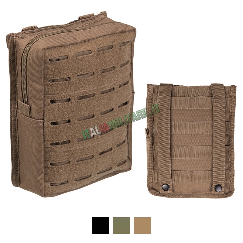 TASCA PORTA UTILITY A TAGLIO LASERModello di tasca militare MilTec, sorella maggiore della Tasca Porta Utility Small. Studiata per essere utilizzata ai fianchi con cintura o cinturone, può ovviamente essere apposta anche su gibernaggi modulari grazie agli attacchi MOLLE di cui è dotata. Gli attacchi modulari sono a taglio laser e a scratch sul fonte, mentre hanno forma tradizionale sul retro. CARATTERISTICHE: