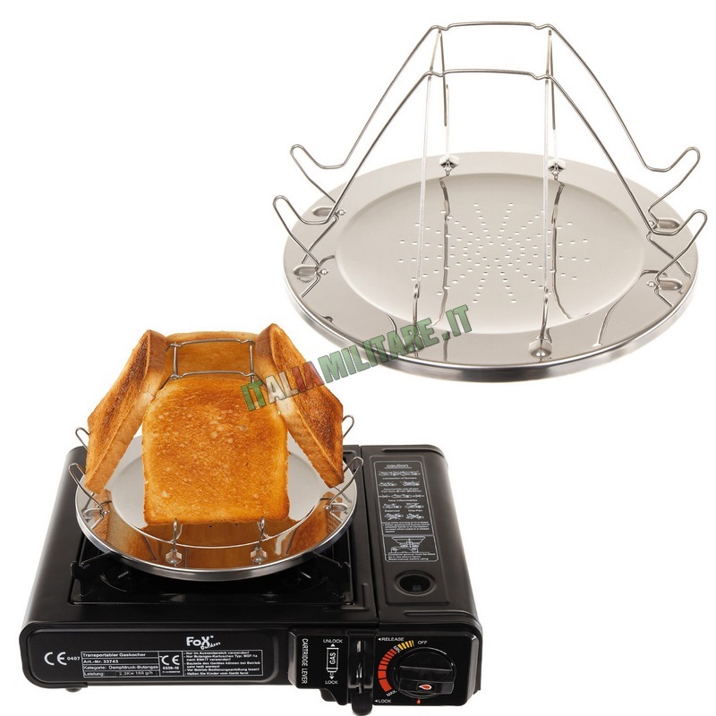 TOSTAPANE DA OUTDOORTostapane pieghevole realizzato per scaldare fino a 4 fette di pane, può essere utilizzato in campeggio, buschraft o in outdoor in genere, è adatto ad ogni tipo di stufa. È compreso di pinze in acciaio inossidabile da 12 cm. Stufa non compresa. DIMENSIONI: diametro 22 cm x altezza 13 cm PESO CON PINZE: 250 gr MATERIALE: Acciaio inossidabile MARCA: FOX OUTDOOR Da oltre 10 anni Italia Militare si occupa della vendita online di abbigliamento militare, forniture militari e Tostapane Pieghevole da Campeggio vantando una grande esperienza e un magazzino di mille metri quadrati con oltre undicimila prodotti militari disponibili a stock. Supportiamo e riforniamo di abbigliamento militare e accessori militari le nostre forze armate, forze dell'ordine e operatori di sicurezza, anche nelle missioni all'estero. I nostri prodotti sono destinati a militari, outdoor, tempo libero, soft-air e ai collezionisti. Puoi ordinare Tostapane Pieghevole da Campeggio attraverso web, E-mail e telefono. Se hai difficoltà a trovare Tostapane Pieghevole da Campeggio utilizza il campo ricerca per filtrare i risultati. Tutti i prodotti del settore provengono dai più importanti e affidabili fornitori del settore militaria e outdoor. La soddisfazione del Cliente è importante per Italia Militare e per questo la consegna di Tostapane Pieghevole da Campeggio avviene nel più breve tempo possibile.