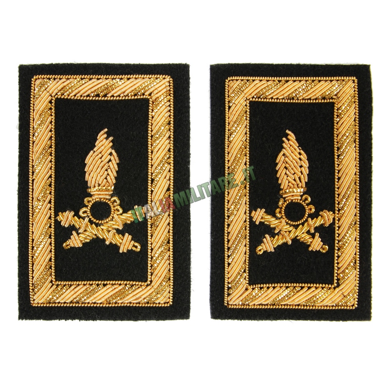 TRAVETTE ESERCITO ITALIANO - ARTIGLIERIA PESANTE CAMPALETravette militari per la giacca dell'uniforme di gala dell'Esercito Italiano, Artiglieria Pesante Campale. Il modello di travetta qui in vendita è commercializzato singolarmente o a coppia, a scelta in base alla necessità. TRAVETTE IN VENDITA - CATEGORIA: